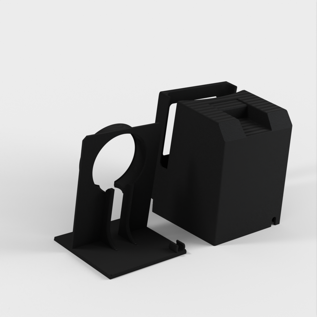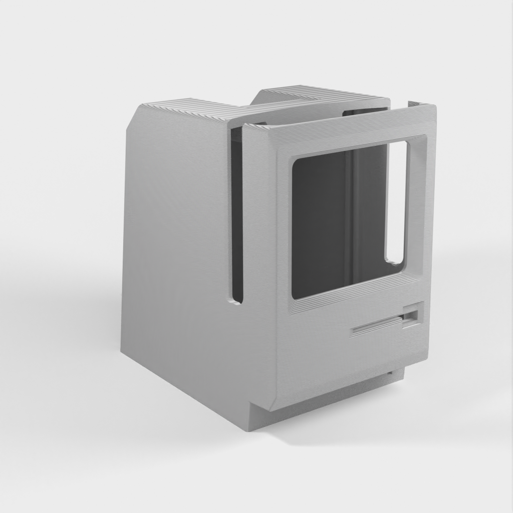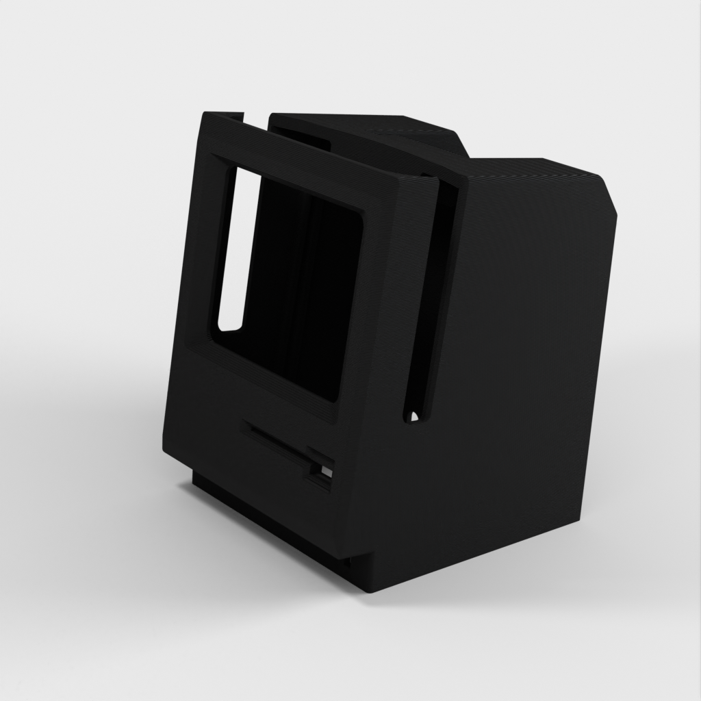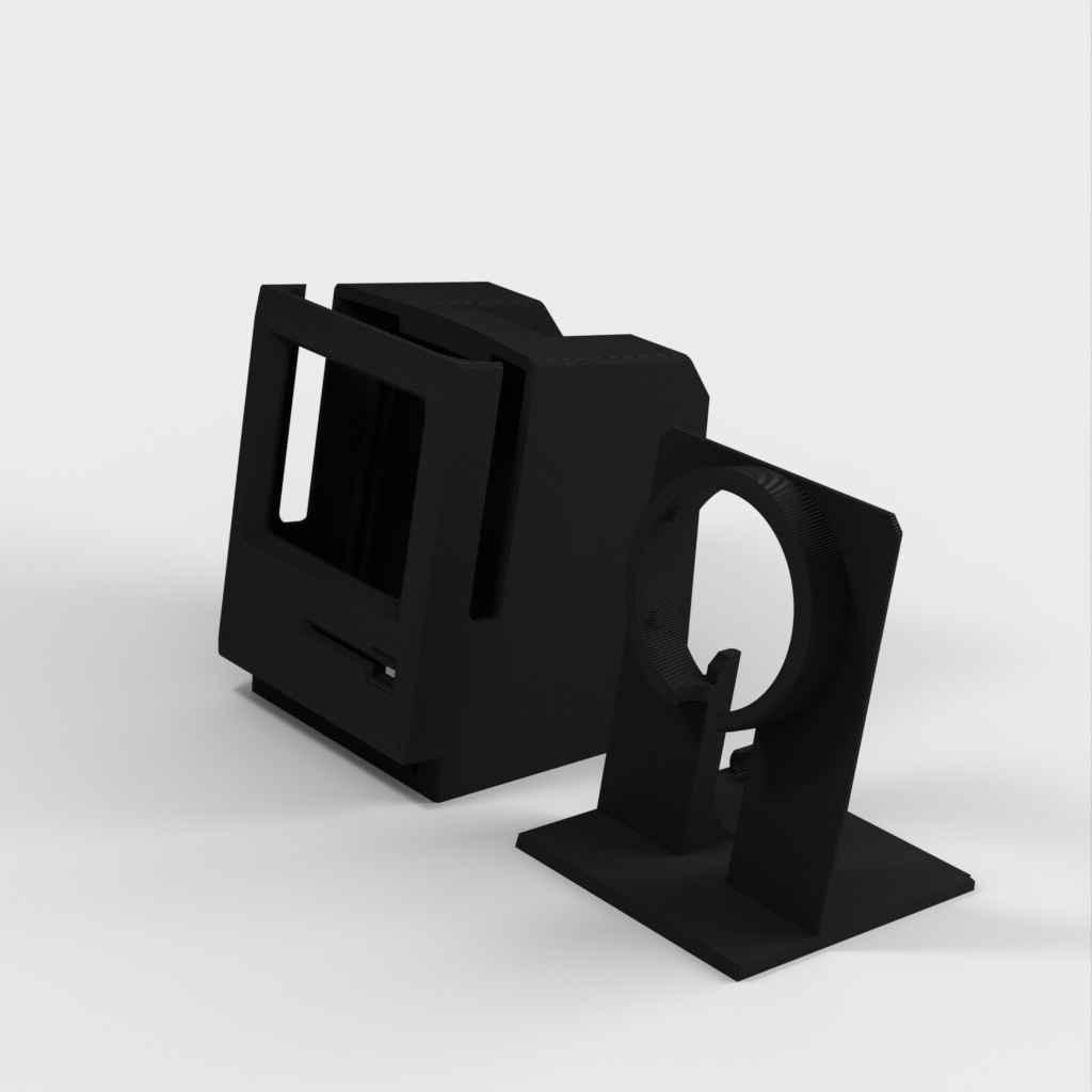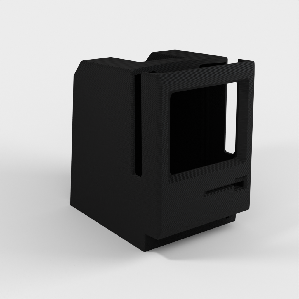 Apple Watch -latausteline klassiseen Mac-tyyliin. Tämä on kaksiosainen latausteline Apple Watchille, jossa osa 1 pitää langattoman latausmekanismin paikallaan ja osa 2 liukuu päälle ja tarjoaa paikan Apple Watchin telakoimiseen. Kuoren sivuilla on aukot, jotka pitävät kellon tukevasti kiinni sen rannekkeesta, kun taas magneettilatauslaite pitää sen paikallaan latausta varten. Näyttö on samassa linjassa Macin näytön kanssa, joten voit nähdä näytön, kun kello on yöpöytätilassa.