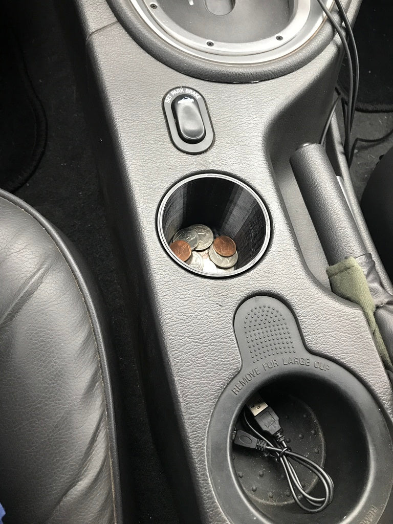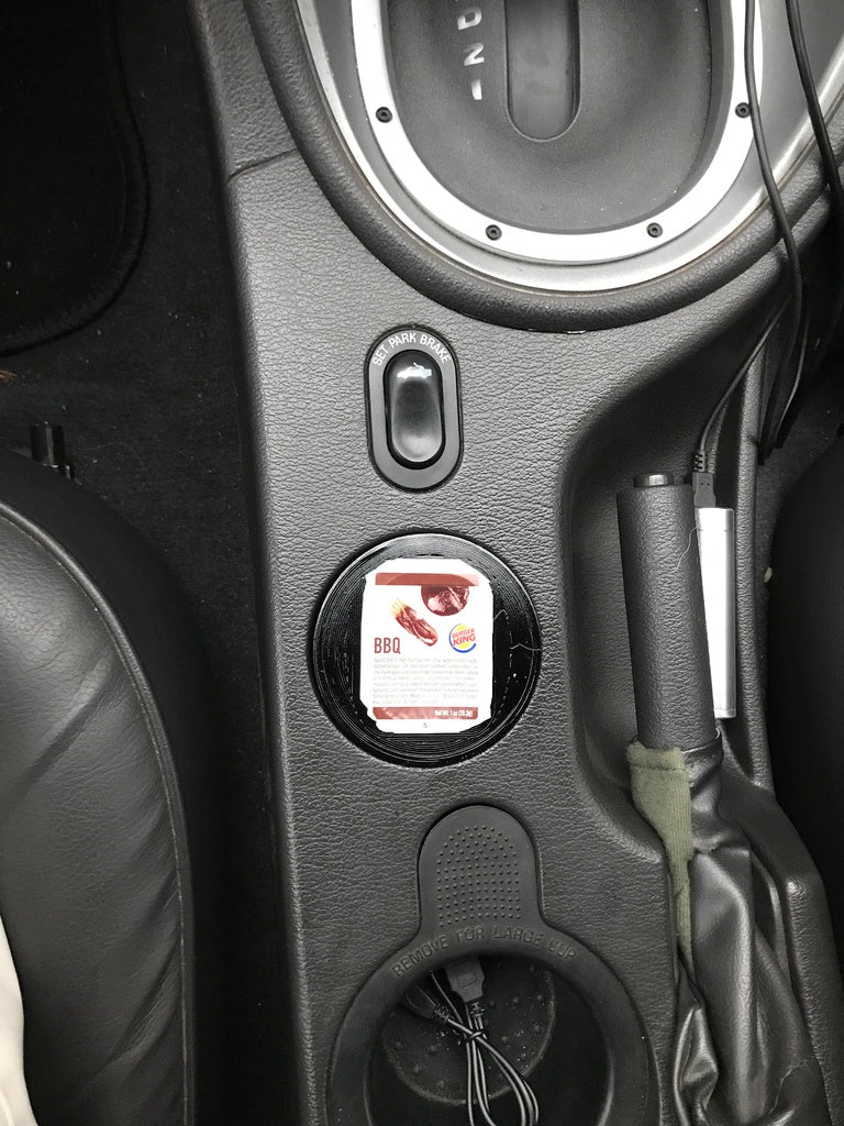 Tämä auton mukitelineen sisäosa ja pikaruokakastikkeiden pidike on suunniteltu kolikoiden ja muiden pienten esineiden helppoon säilytykseen. Siinä on myös kansi, joka pitää samankokoiset kastikepurkit kuin Burger King, McDonald's ja vastaavat. Kokoa voidaan säätää eri mukitelineisiin sopivaksi. Järjestä autosi paremmin tällä käytännöllisellä mukitelineen sisäosalla ja pikaruokakastikkeiden pidikkeellä.