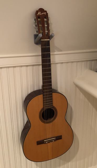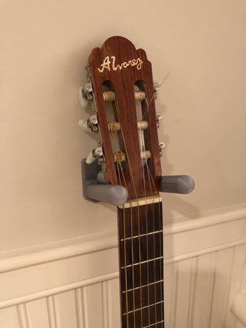 Tämä ripustin on suunniteltu klassiselle kitaralle, jonka kaula on 57 mm mutterin kohdalta. Muutokset ovat helppoja, koska kyseessä on teräsviila.
