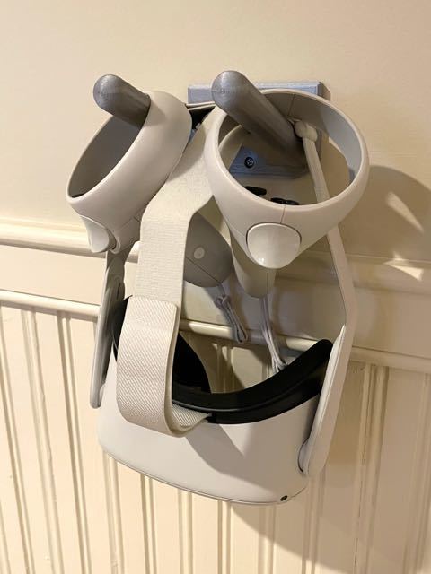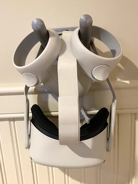 Se toimii myös täydellisesti Ocuclus Quest-2 -ripustimena! Kiinnitä se tarpeeksi lähelle pistoketta, jotta se voidaan ladata.