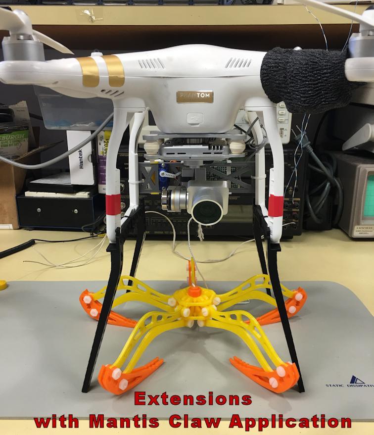 DJI Phantom 135 mm:n jalkojen jatkeet on suunniteltu Phantom 3:lle pudotusmekanismia varten (tulossa pian). Ne voivat nostaa dronea jopa noin 135 mm (riippuen jalkojen asennosta), mikä auttaa antamaan lisätilaa nousemiseen ja laskeutumiseen kuormien kanssa tai kun laskeudutaan korkeille ruohoalueille vaikuttamatta gimbaaliin.