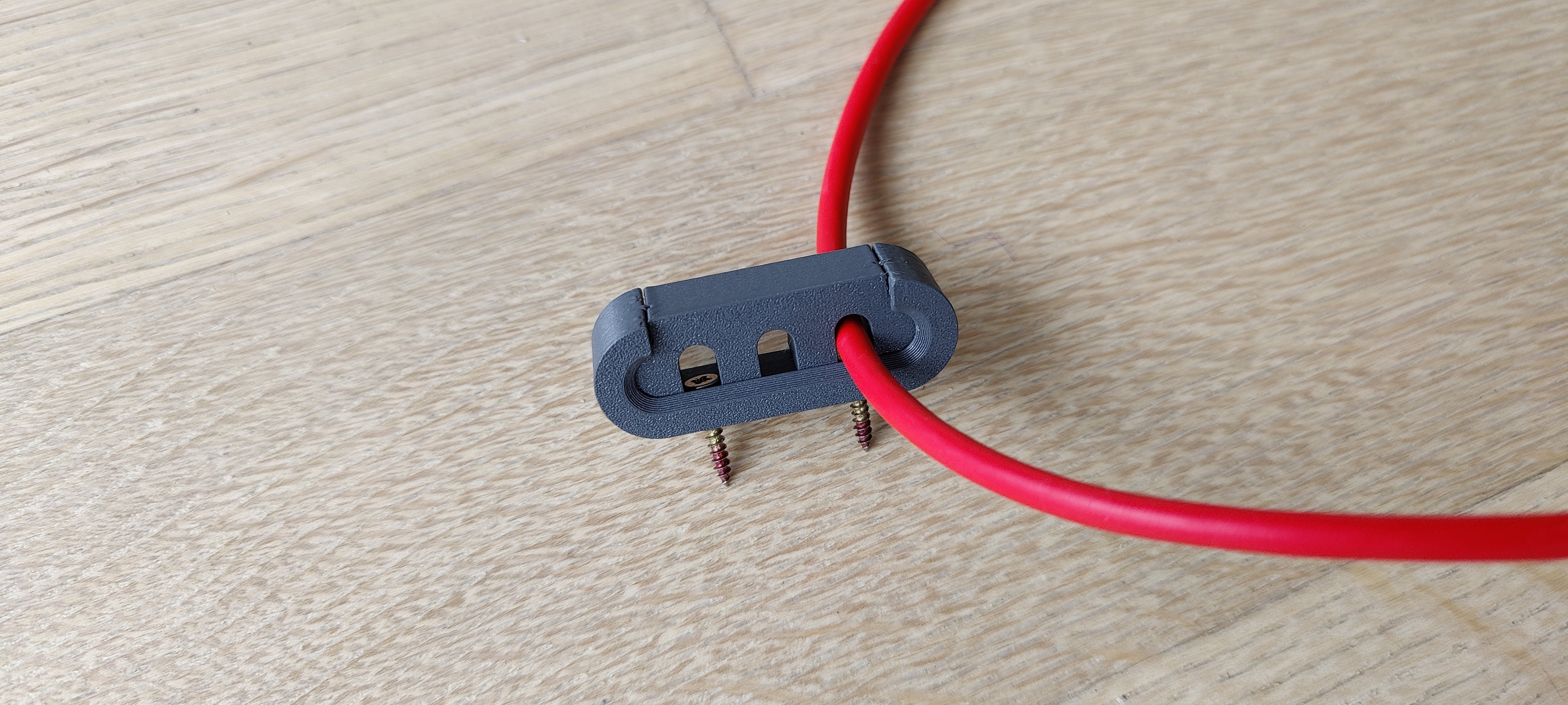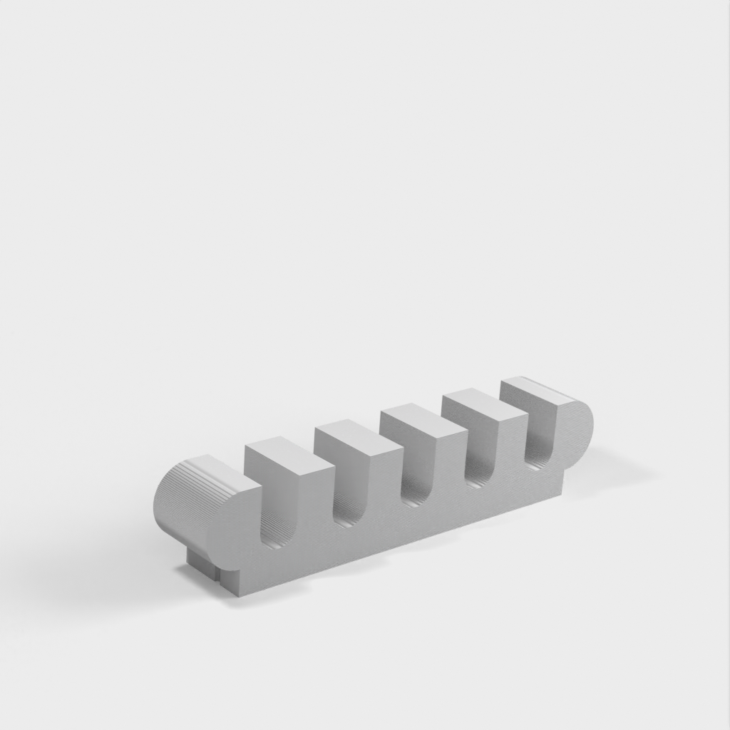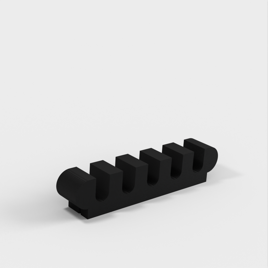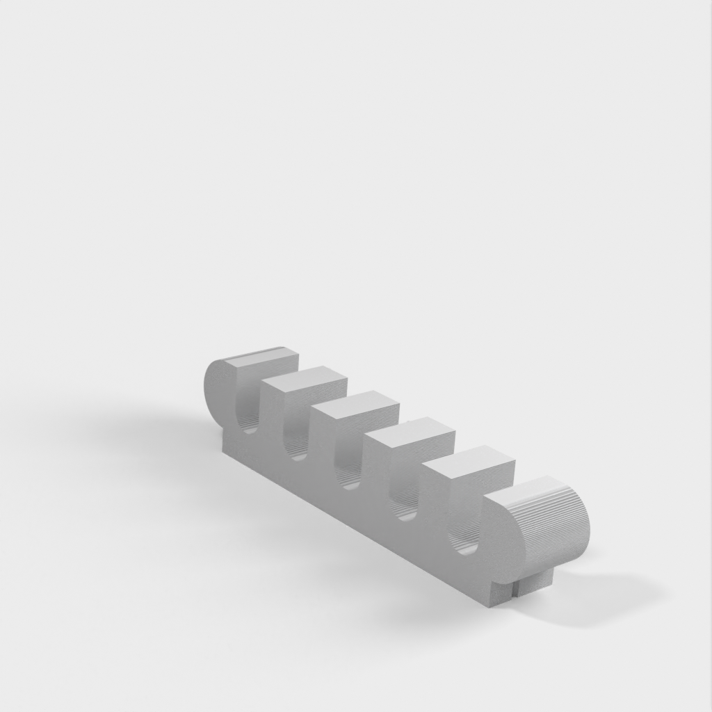 Tämä kiinnitin voidaan ruuvata seinään ja lukitsee kaapelit tarkasti. Parametrisen FreeCad-tiedoston avulla voit tulostaa tämän kiinnikkeen haluamallesi määrälle kaapeleita. Pakkauksessa on tulostusvalmiit tiedostot 3 ja 5 kaapelille. Petg, 30 % täyte.