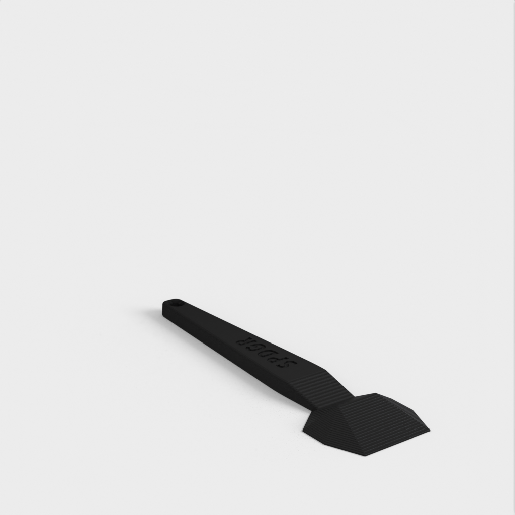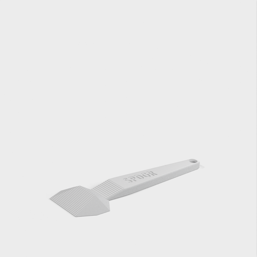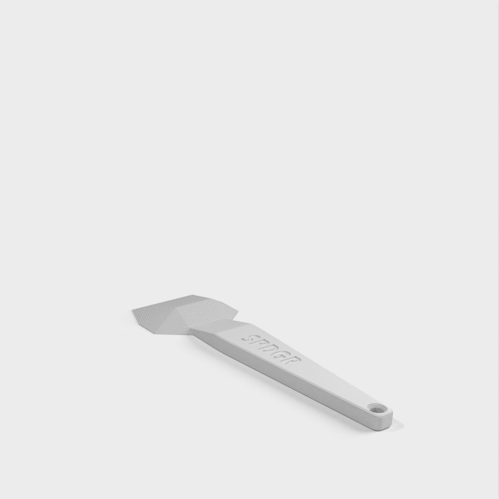 Tämä on ergonominen sänkykaavin, joka on täydellinen 3D-tulostukseen. Auttaa raaputtamaan, spudata ja fudata asioita helposti ja turvallisesti naarmuttamatta tulostuspintaa. Sen muotoilu on mukava pitää kädessä ja sillä on helppo raaputtaa mitä tahansa SPDGD:tä. Tämä sängyn kaavin näyttää B-2-hämäyspommikoneelta ja saattaa myös osittain väistää tutkat.