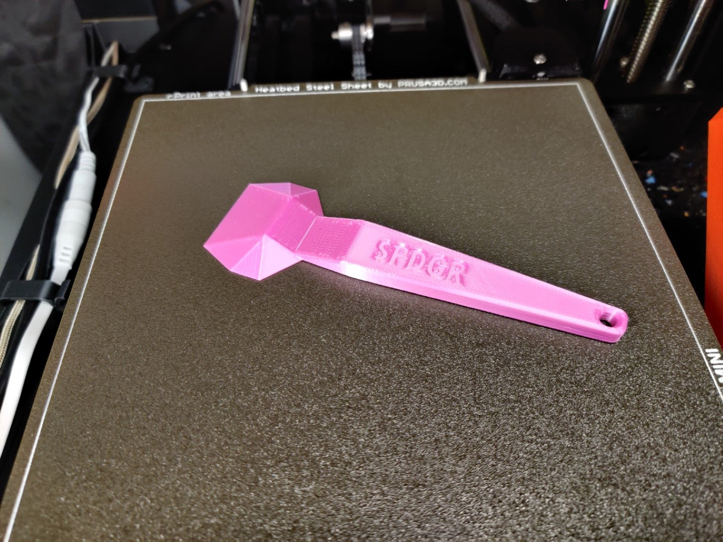Se voi tulostaa Prusa Mini+ -laitteella noin 45 minuutissa SPEED-esiasetusta käyttäen. On suositeltavaa tulostaa 0,15 mm / 25 %:n tulostusnopeudella, jotta saadaan hienompia yksityiskohtia kaltevuuteen ja vankempi, tukevampi tuntuma käteen.