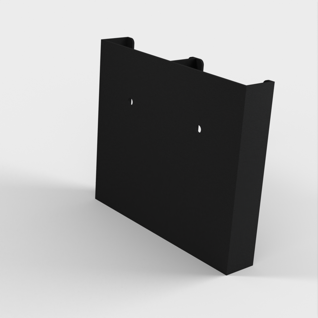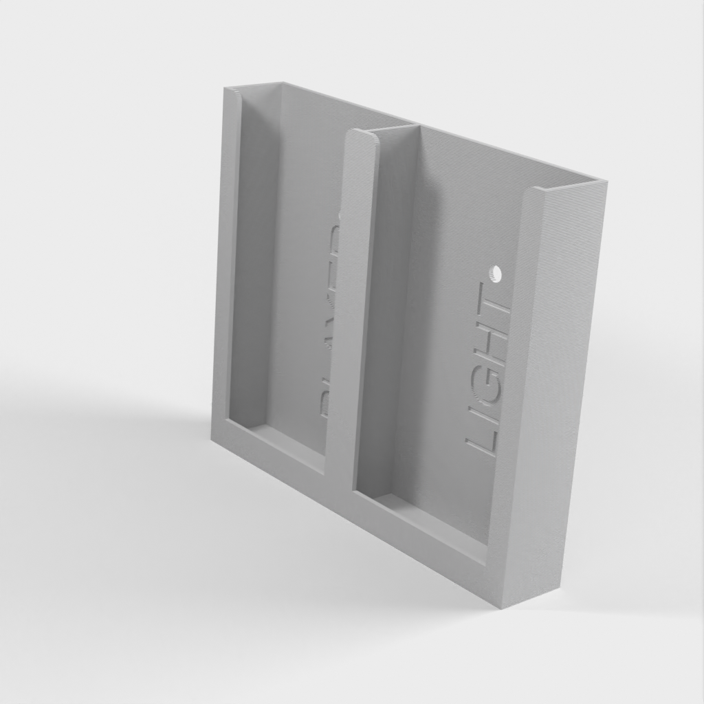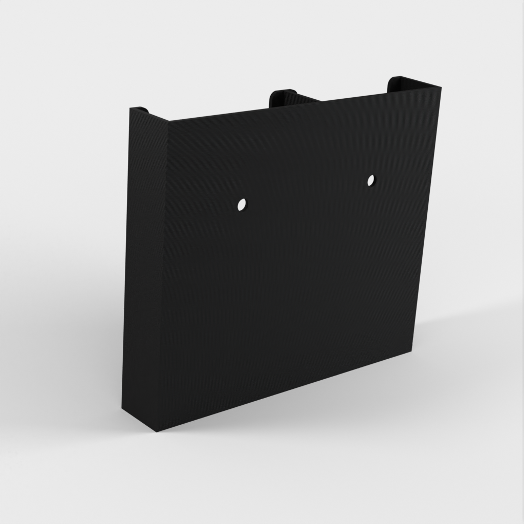 Tämä on yksinkertainen pidike, johon mahtuu 2 kaukosäädintä. Se voidaan asentaa joko pysty- tai vaakasuoraan. Voit kiinnittää sen joko kahdella ruuvilla tai kaksipuolisella teipillä, kumpi sopii parhaiten kotiisi.