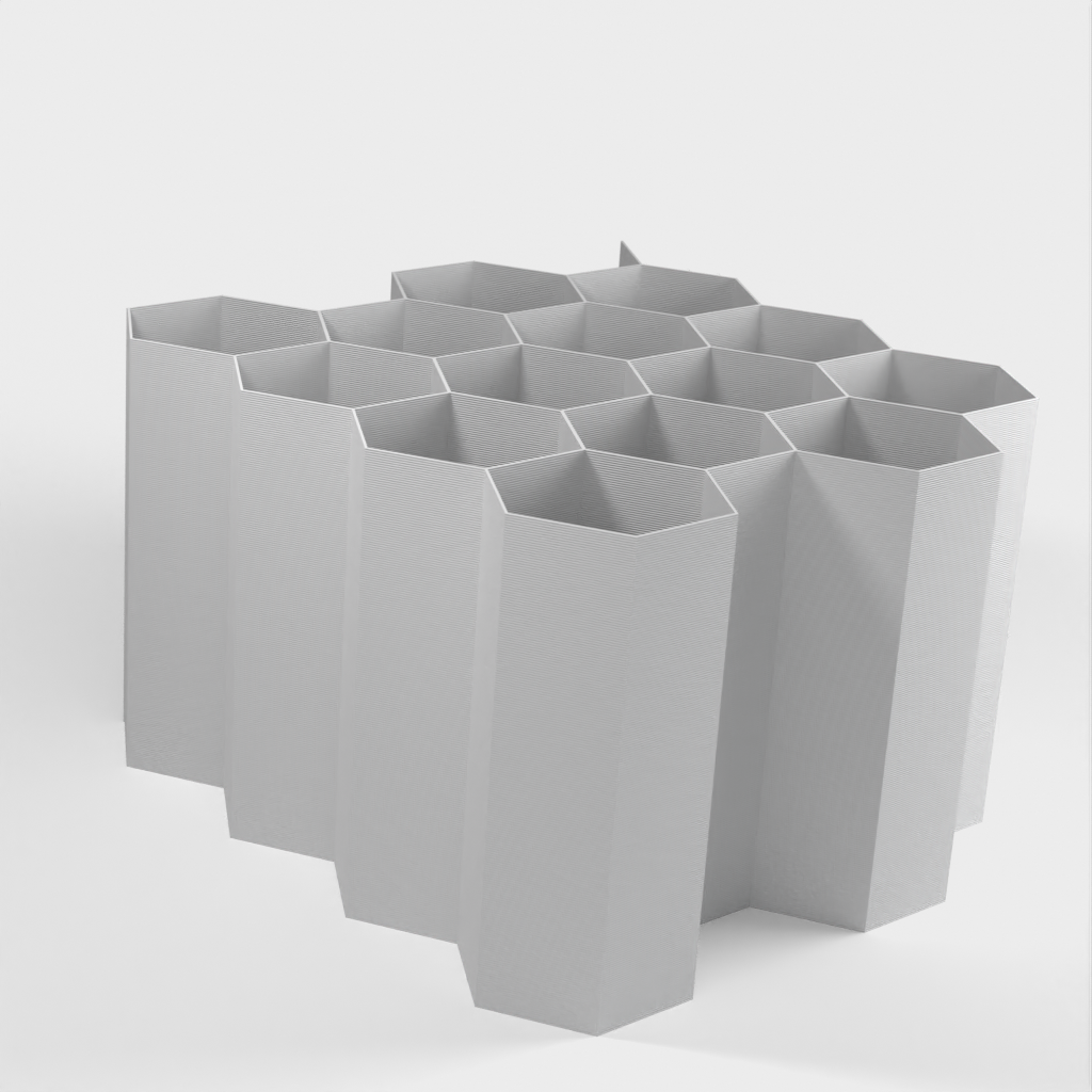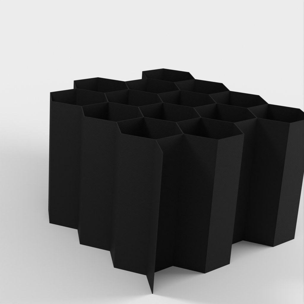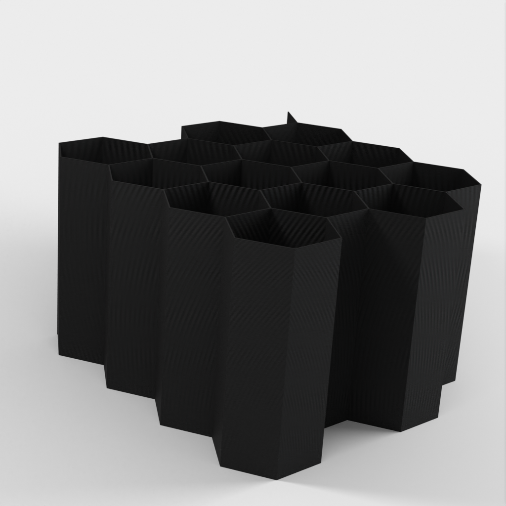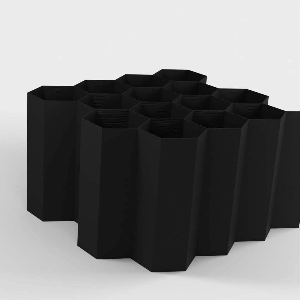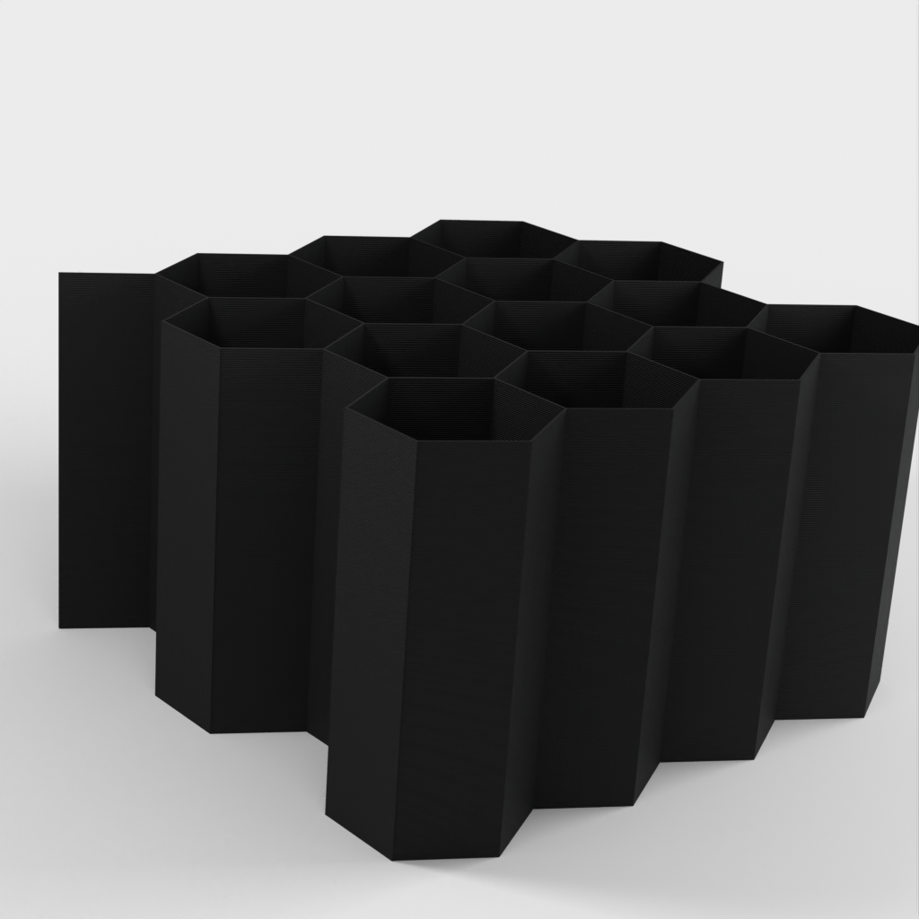 Hex Cable Organiser on modulaarinen kaapelien säilytysjärjestelmä, joka paikallistaa ja säilyttää kaapelit nopeasti ilman, että niistä tulee sotkuista sotkua. Kaapelit voidaan sijoittaa siististi kuusikulmaisiin aukkoihin. Lisää kaapelien säilytyspaikkoja voidaan helposti lisätä.