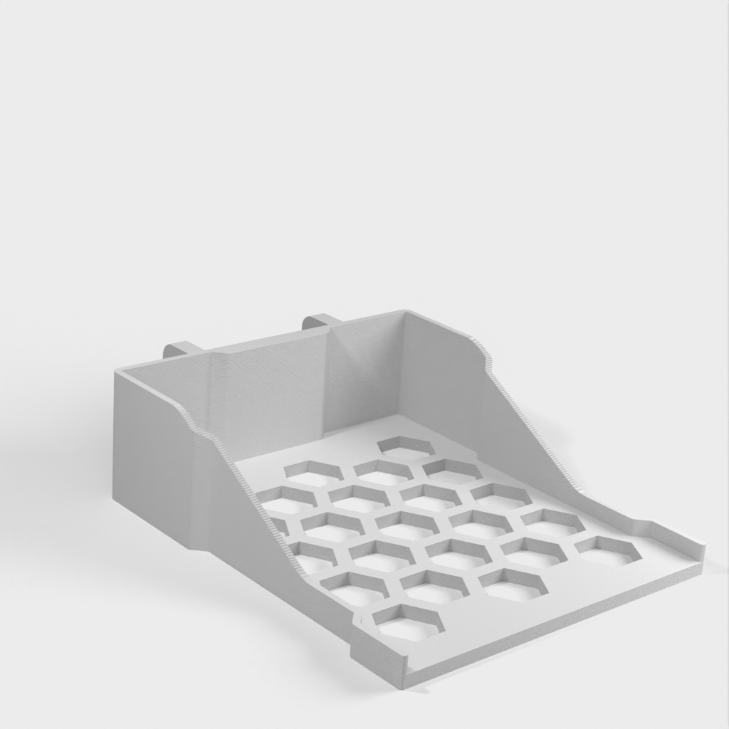 IKEA SKÅDIS -muovilautasen hylly on suunniteltu pitämään tietty laatikko ja säilyttämään sen pinottavuus. Tämä hylly on yhteensopiva Stackable Box V4 -järjestelmän kanssa, mikä parantaa järjestystä ja helpottaa säilytystä.