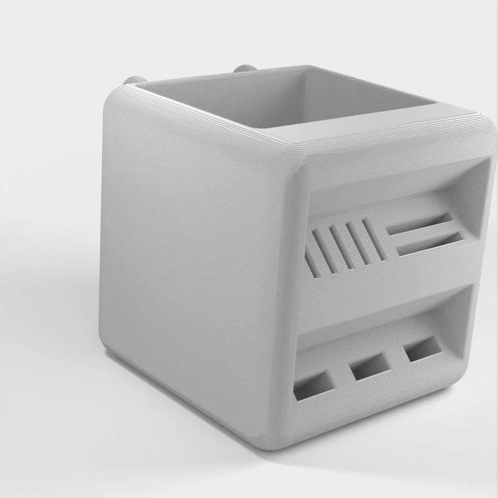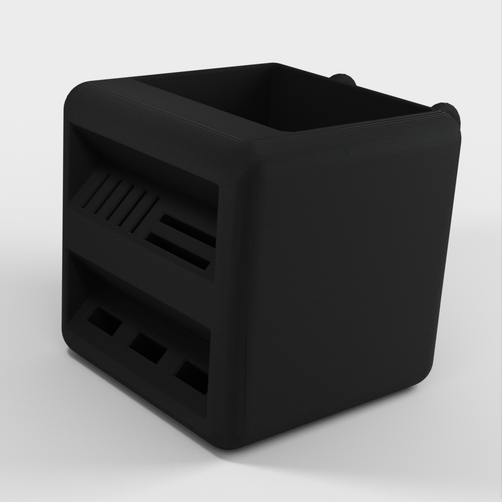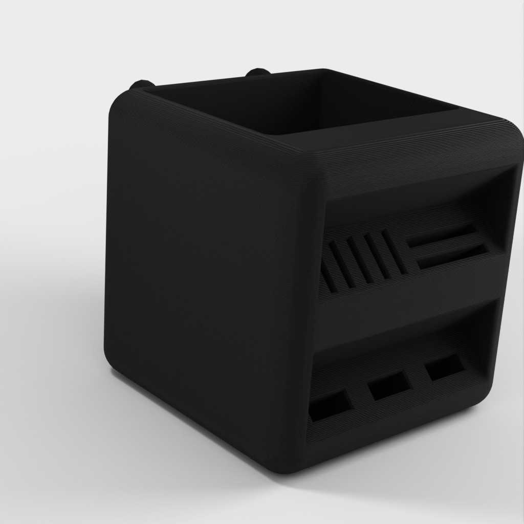 Kynäteline on suunniteltu sopimaan Ikea Skadis -laudoille. Tämä pidike tarjoaa käytännöllisen ja tilavan ratkaisun kynien ja SD-korttien järjestämiseen. Tarjoamalla siistin ja järjestetyn säilytysratkaisun tämä pidike auttaa pitämään työpöytäsi siistinä.