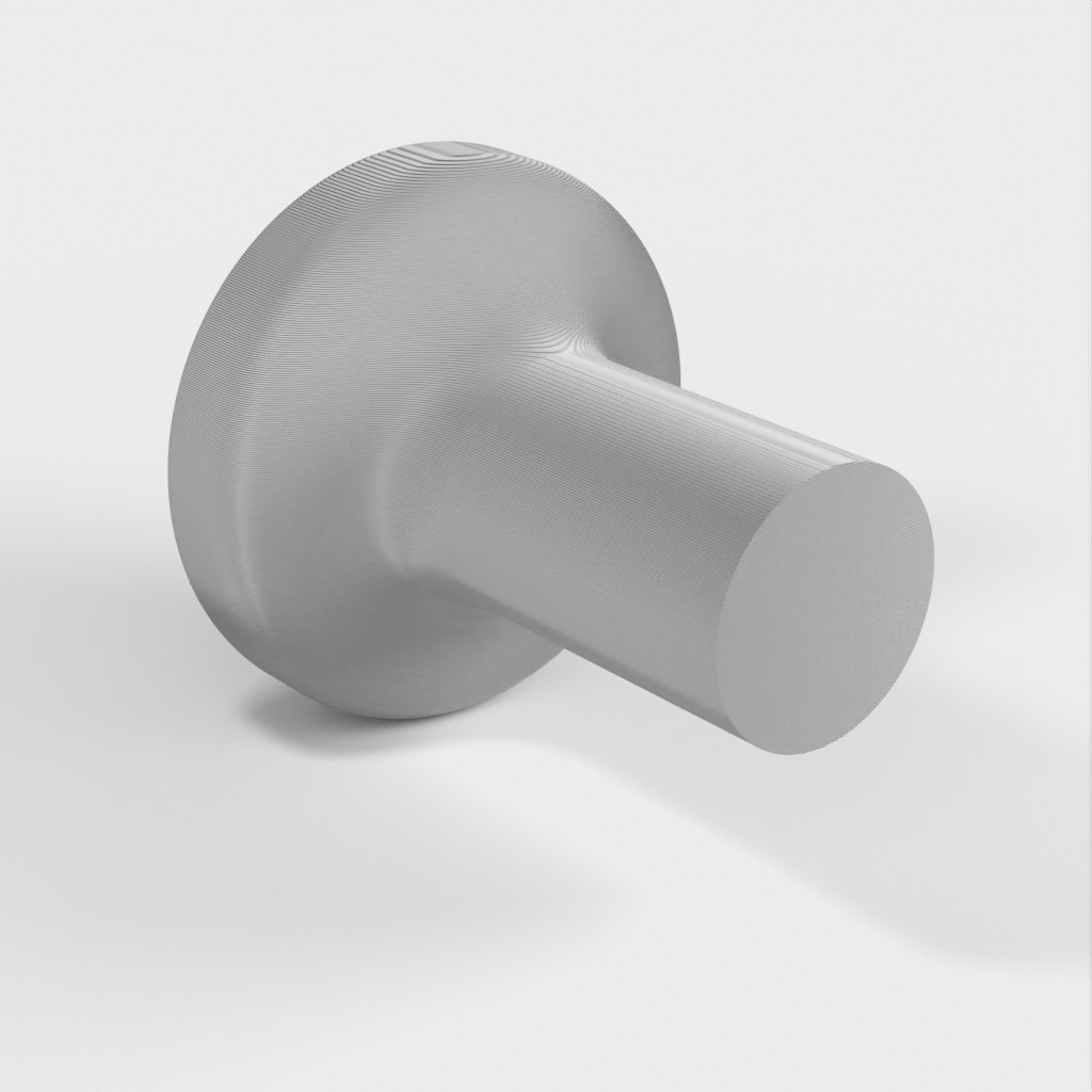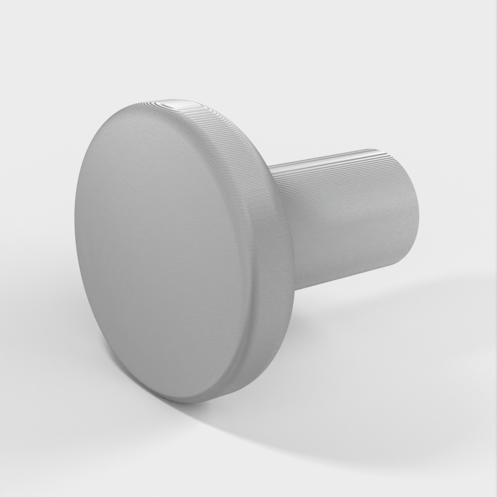 Tämä nuppi on parempi kuin monet muut mallit, koska se toimii. Yritin tulostaa useita eri nupin malleja, mutta mikään niistä ei toiminut: joko reikä oli liian suuri ruuville tai mallissa oli hienoja osia, joita tulostimeni ei pystynyt käsittelemään. Tämä malli on yksinkertainen ja ratkaisee molemmat ongelmat.