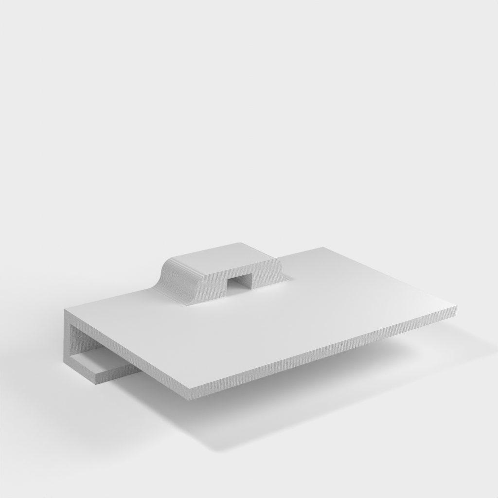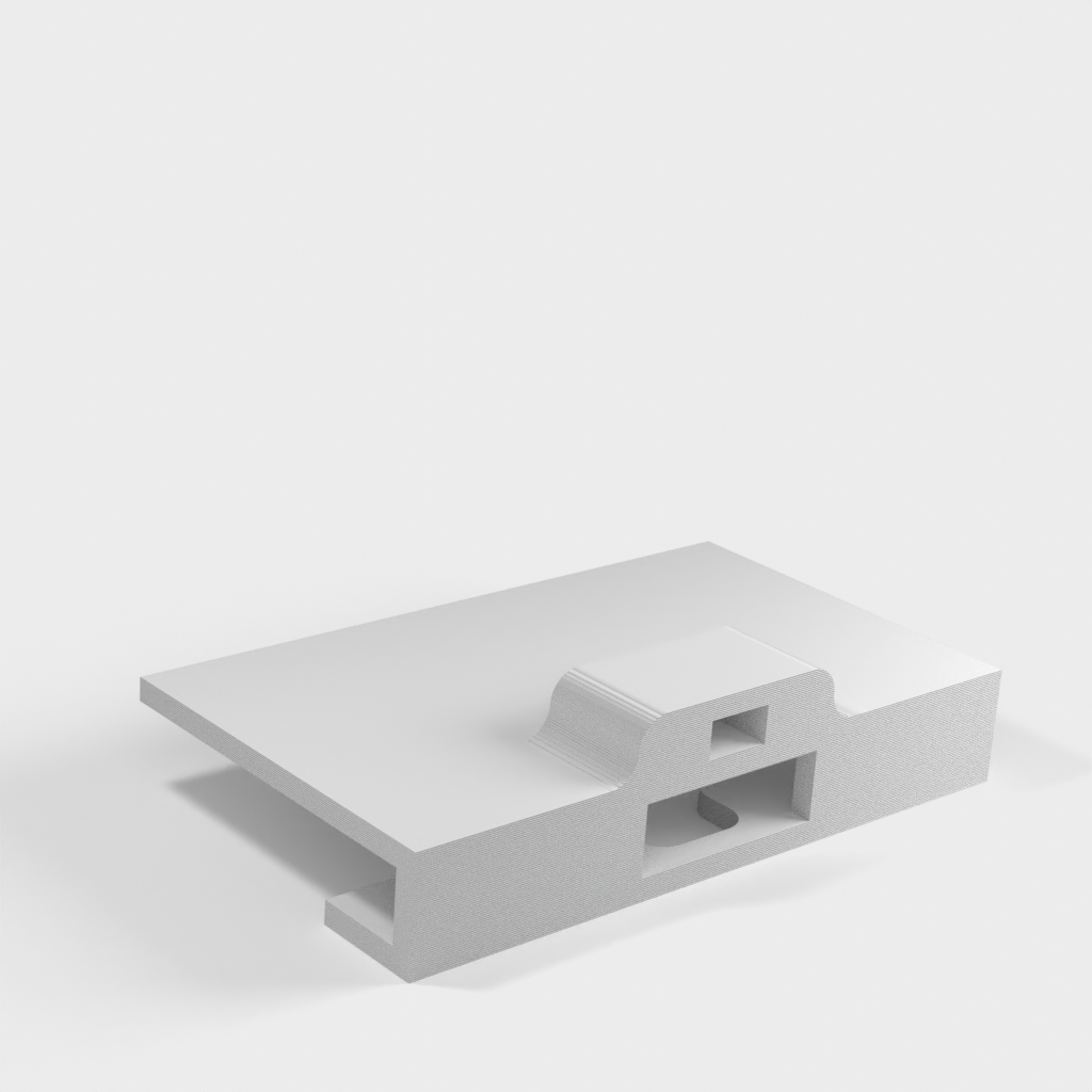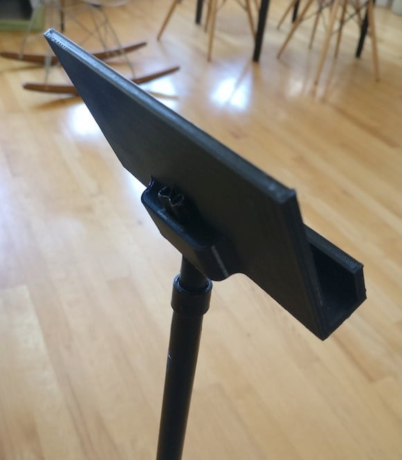 Minimalistinen iPad/tabletin kiinnitys "Hamilton"-tyylisille lanka-musiikkitelineille. Pohjassa on portti tabletin lataamista varten ja lovi, josta pääsee kotipainikkeeseen. Tämä kiinnitys on yhteensopiva iPad Airin kanssa Applen nahkakotelossa, mutta muidenkin tablettien pitäisi sopia hyvin.