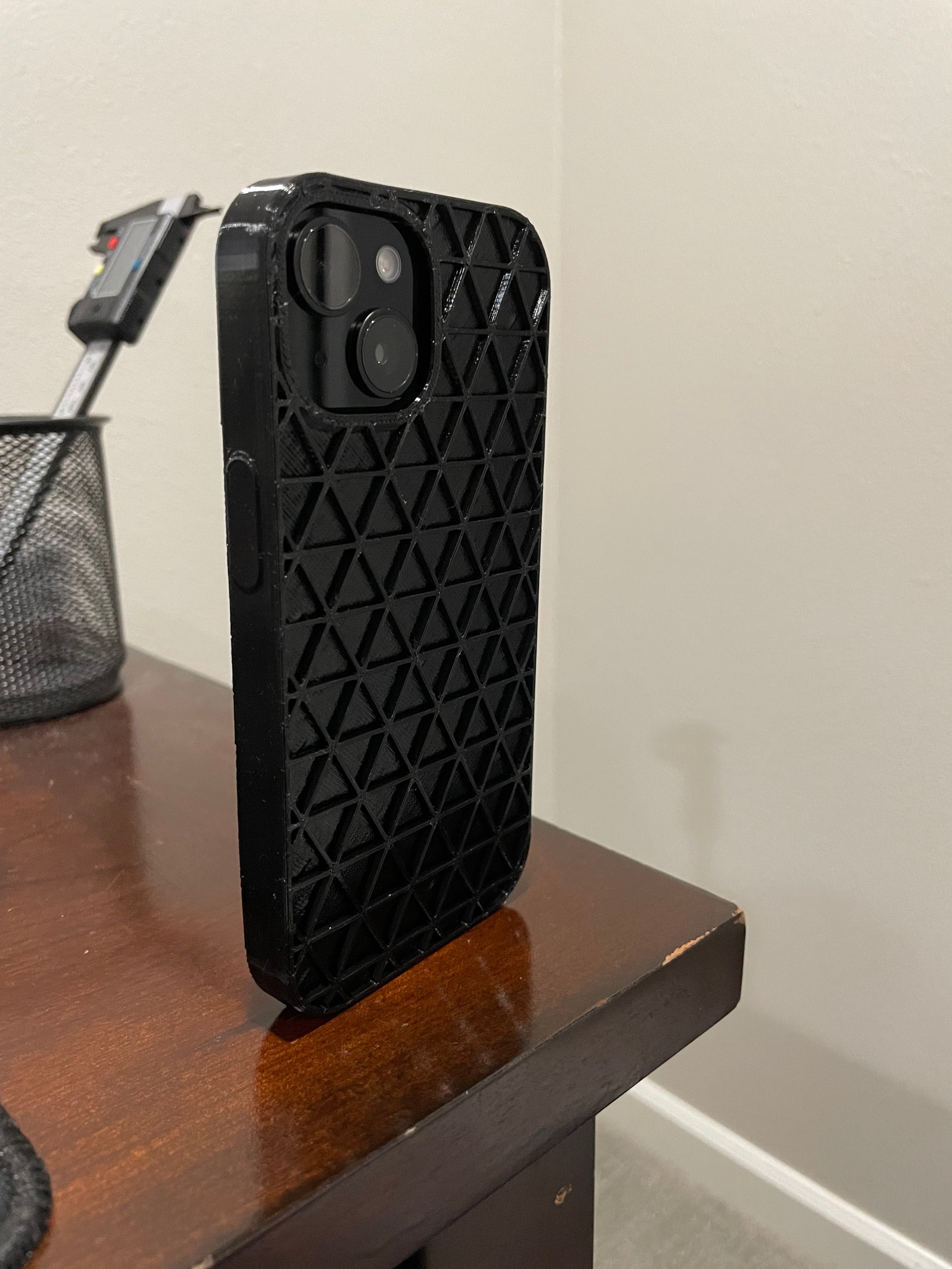 Anna iPhone 15:lle optimaalinen suoja ja toiminnallisuus tällä tyylikkäällä, arkikäyttöön suunnitellulla kotelolla. Kotelon takana on ainutlaatuinen kolmiokuvio, joka ei ainoastaan lisää modernia esteettistä ilmettä, vaan myös parantaa pitoa, jotta puhelimesi pysyy tukevasti kädessä.