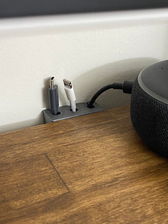 Tämä on TPU:sta valmistettu kaapelipidike, joka on joustava. Se pysyy paikallaan teipillä ja kitkalla työpöydän ja seinän välissä, mikä takaa mattapintaisen ja turvallisen säilytyksen kaapeleillesi.