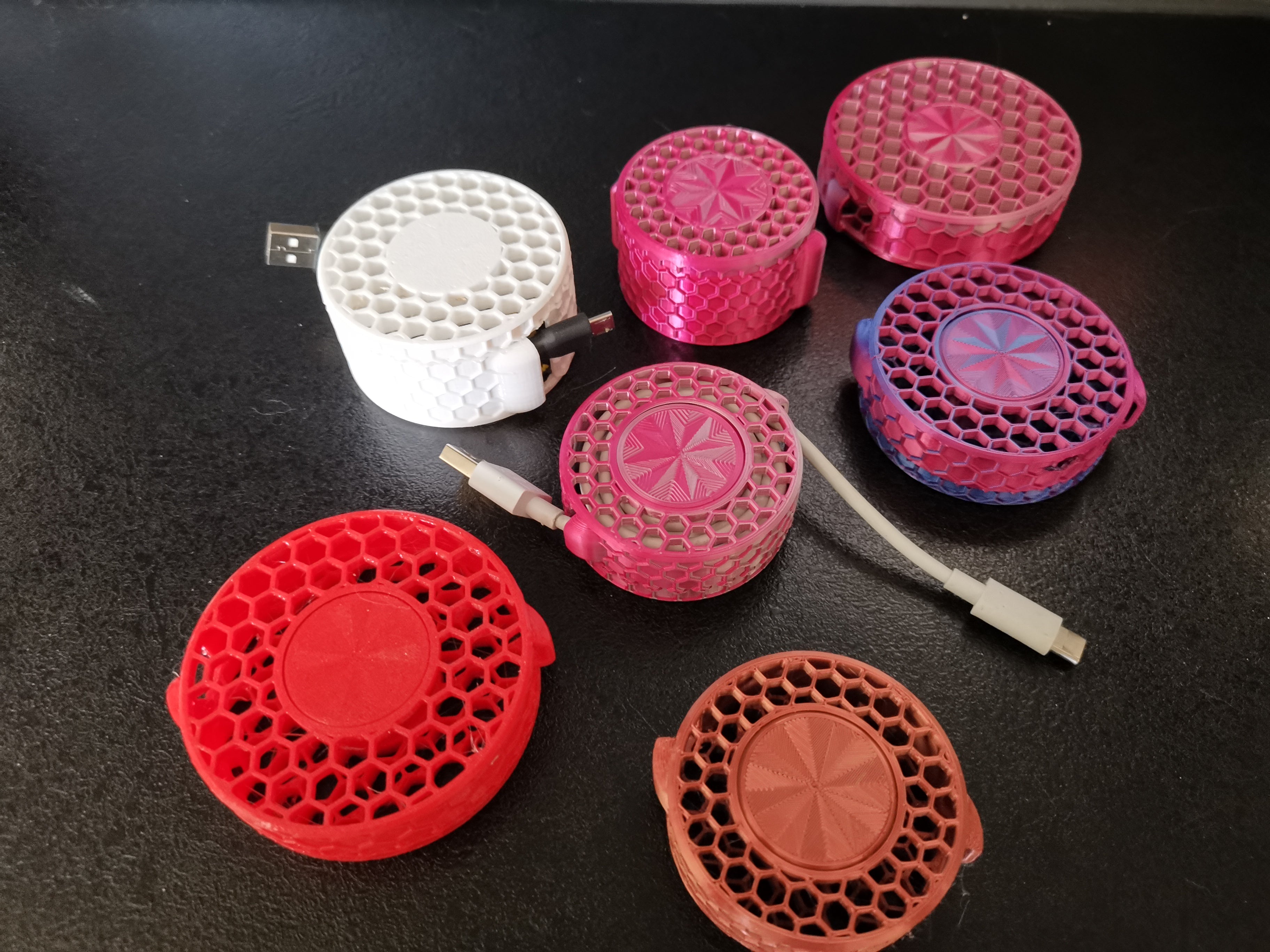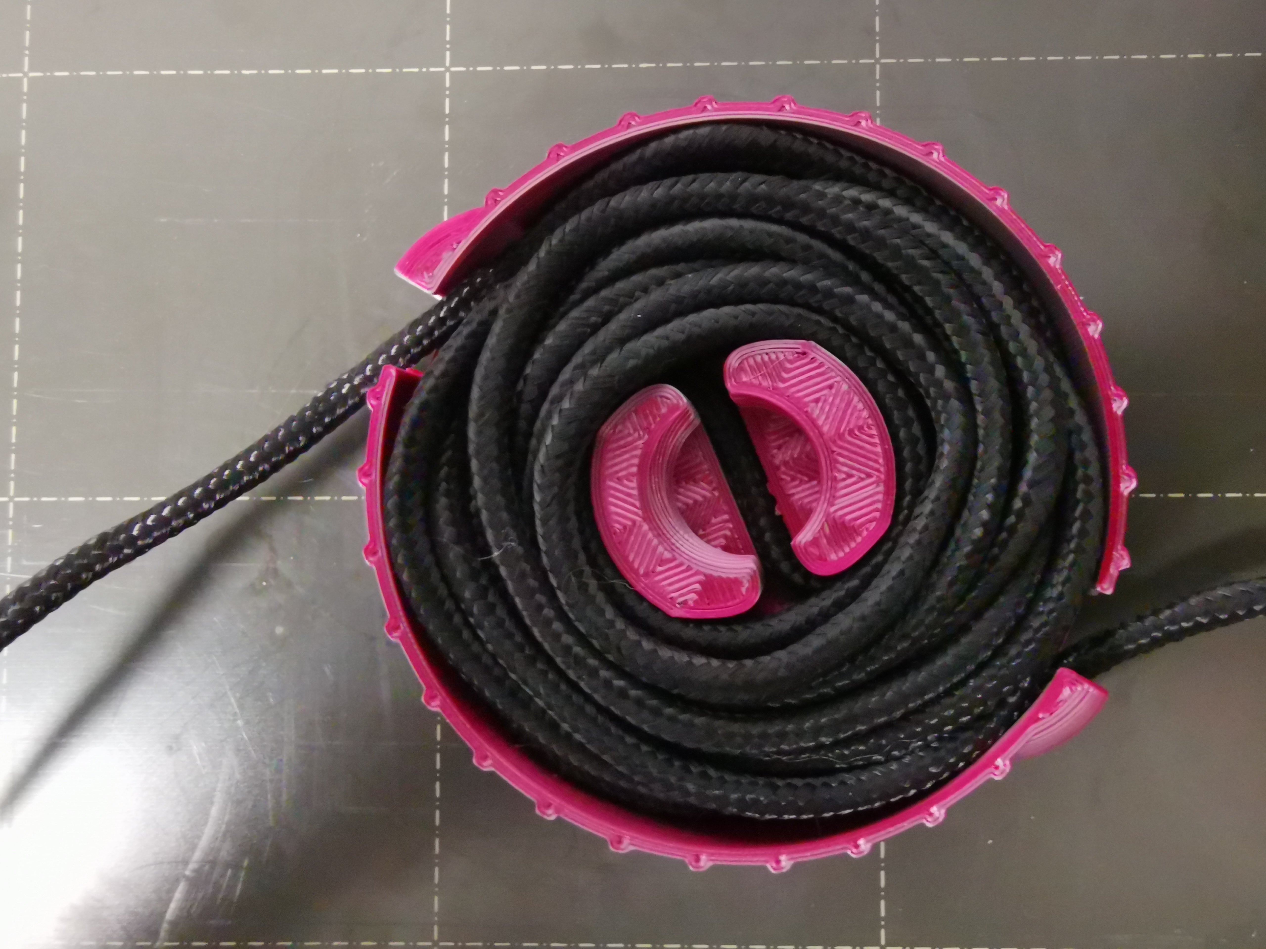 Kaapelipidike, joka sopii täydellisesti pitämään kaapelit järjestyksessä ja ilman turhia mutkia. Sopii usean pituisille kaapeleille valitusta mallista riippuen. Ensimmäinen numero edustaa kaapelin likimääräistä pituutta ja toinen numero korkeutta. Valmistettu PLA- tai PETG-materiaalista, ilman tukia.