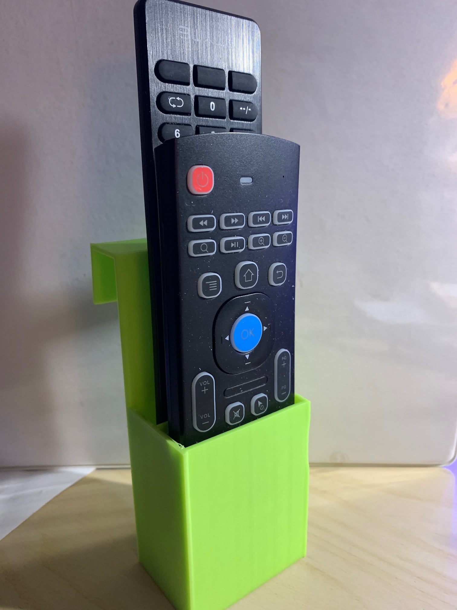 Kaukosäätimen pidike kaukosäätimen helppoa ja kätevää säilytystä varten. Pidike voidaan sijoittaa mihin tahansa sopivaan paikkaan kodissasi, jotta kaukosäätimesi ovat aina käden ulottuvilla. Täydellinen apuväline laitteiden seuraamiseen ja kodin siistinä pitämiseen.