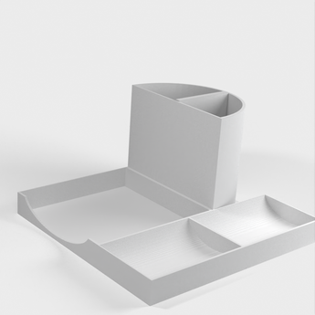 Työpöydän järjestelijä sopii täydellisesti kynien, paperiliittimien ja post-it-lappujen säilyttämiseen enintään 12x12 cm:n kokoisina. Tämän organisoijan avulla pidät helposti kirjaa työpöydälläsi ja varmistat, että sinulla on aina tarpeellisimmat toimistotarvikkeesi käden ulottuvilla.