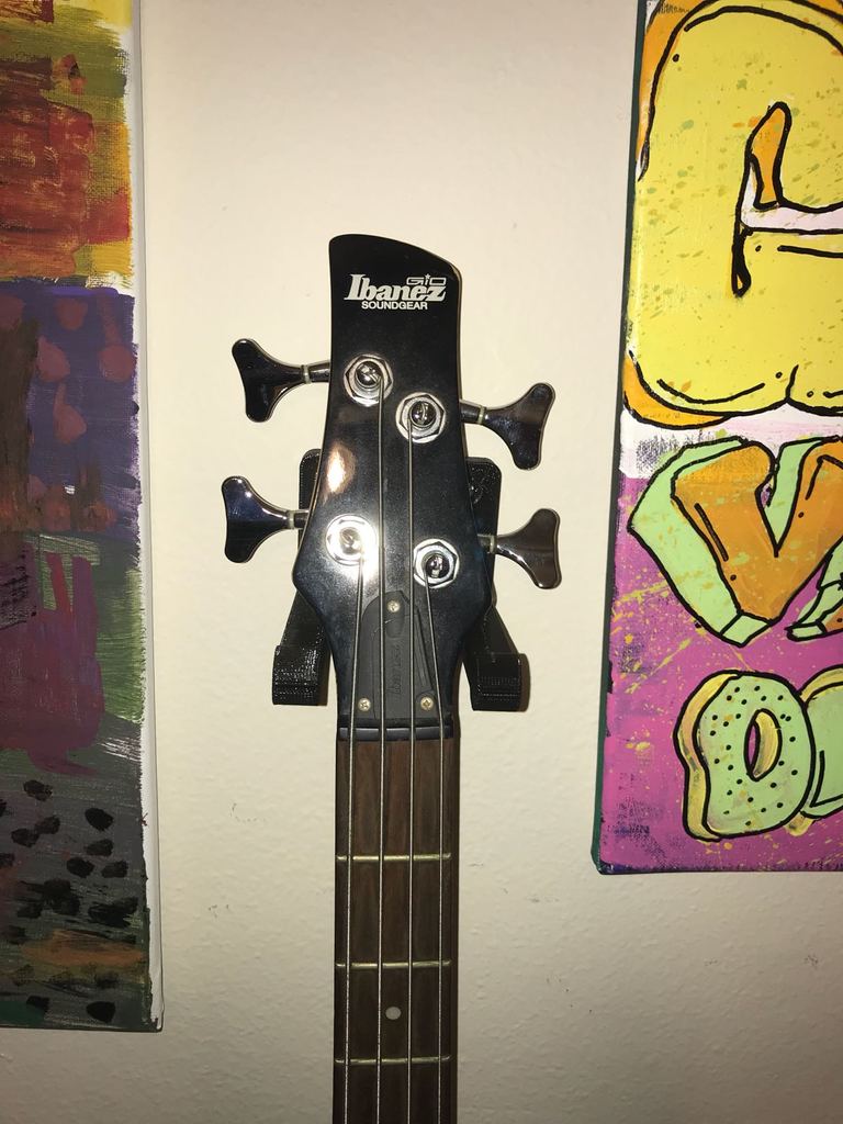 Tämä on tavallinen seinäteline kitaralle. Sekä basso- että sähkökitarat on testattu onnistuneesti tällä mallilla. Keskireiän sisällä oleva "A" voidaan poistaa ja pyörittää reiän sisällä. Teline voidaan asentaa suoraan seinään ruuveilla, ja se tarjoaa sekä turvallisen säilytyksen että helpon pääsyn kitaraasi, kun tarvitset sitä.