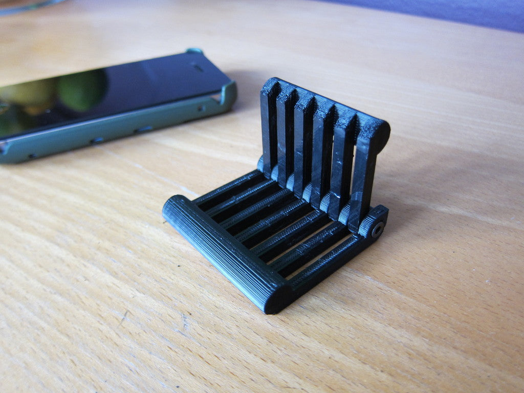 Tämä on pieni matkapuhelimen pidike, joka on suunniteltu taittumaan kompaktiksi paketiksi (noin 5cm x 5cm x 0.6cm).