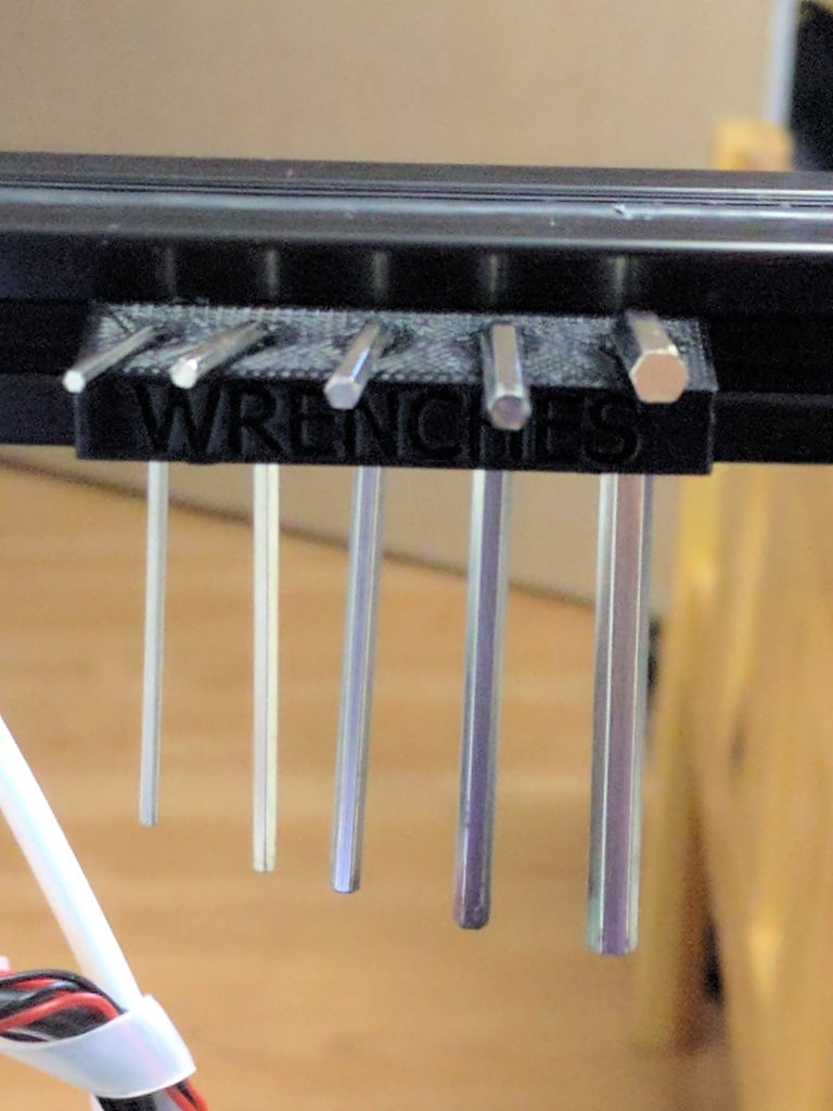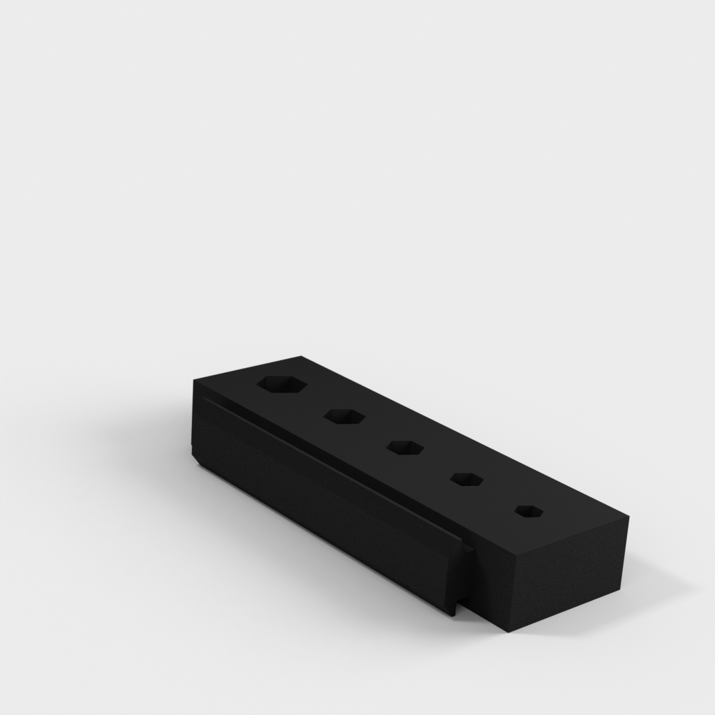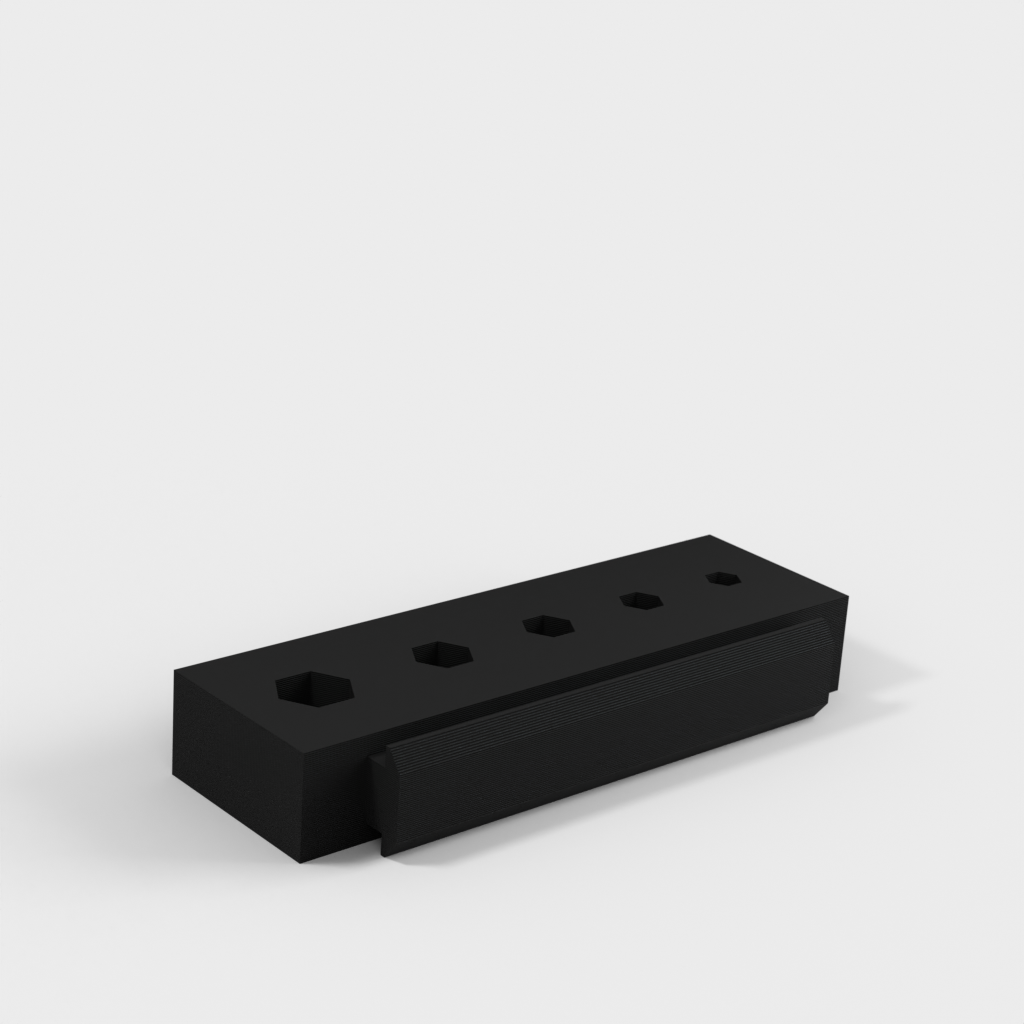 Kuusiokoloavainpidike on suunniteltu pitämään 5 tavallisen kuusiokoloavaimen sarjaa, jotka yleensä tulevat useimpien 3D-tulostimien mukana. Tämä työkalu on käytännöllinen, koska se voidaan ripustaa suoraan 3D-tulostimeen helpon pääsyn takaamiseksi.