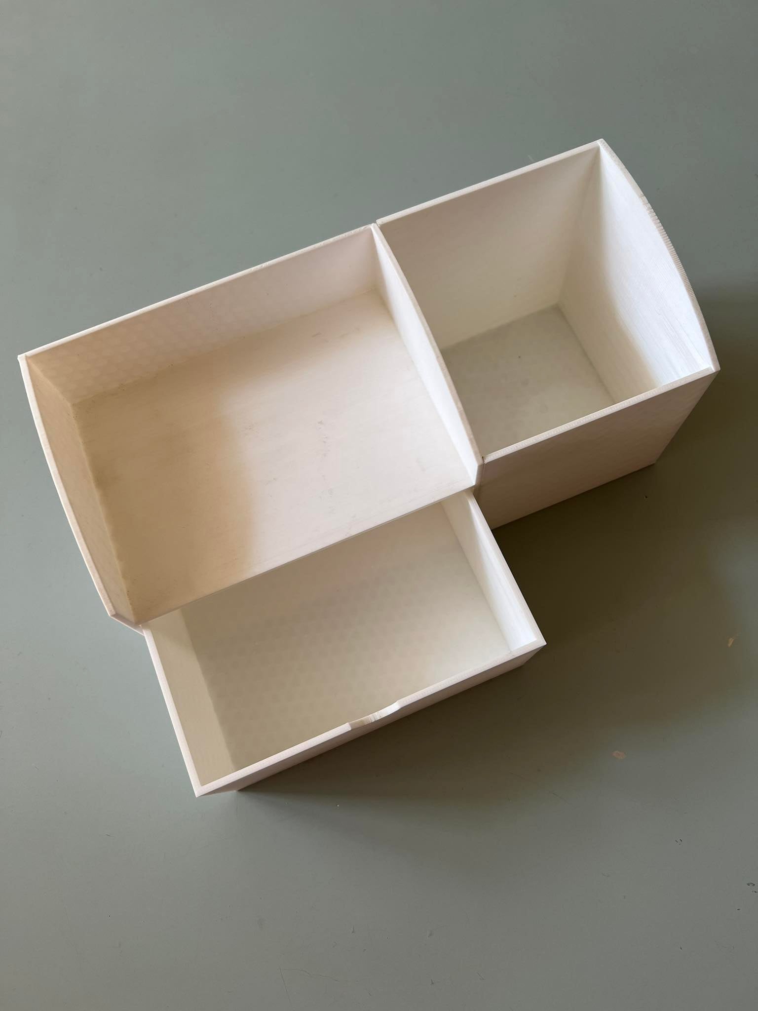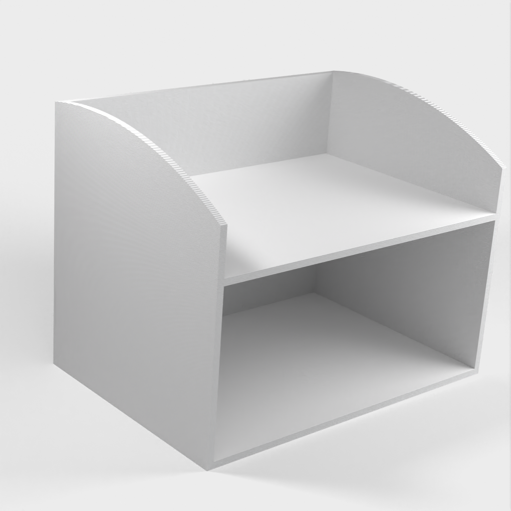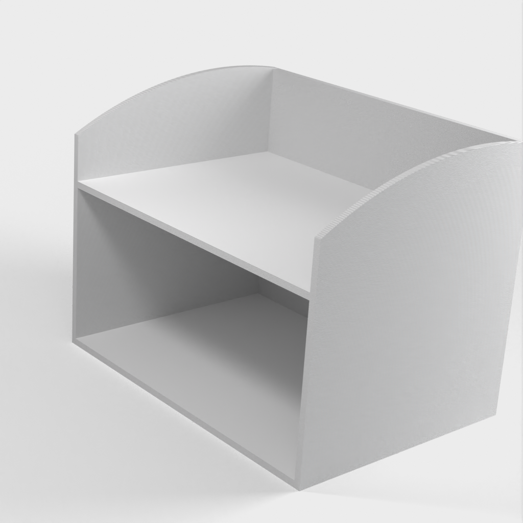 Tämä on PLA:sta painettu kylpyhuoneen järjestäjä. Tulostettu 0,2 mm:n kerroskorkeudella, 0,4 mm:n suuttimella, 20 %:n täytteellä, eikä tukia tarvita. Jokainen osa tulostetaan erikseen ja liimataan sitten yhteen. Tulostettu Ender 3v2:lla.