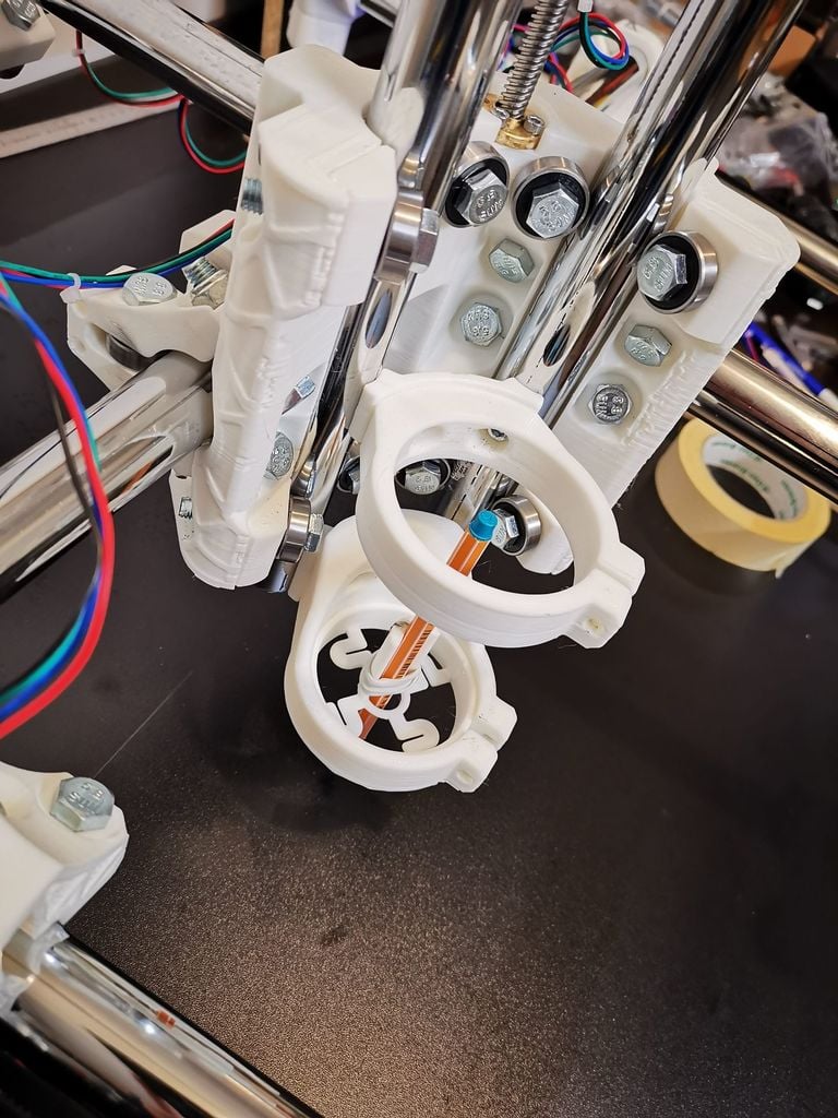 Kynäteline MPCNC Primolle, suunniteltu sopimaan 65 mm:n työkalukiinnikkeeseen, kuten Makita RT0700C. Tämän pidikkeen avulla on helppo vaihtaa kynän ja karan välillä ilman, että työkalukiinnikettä tarvitsee irrottaa MPCNC Primosta. Käytännöllinen lisä työtilaasi, joka varmistaa organisoidun ja tehokkaan työprosessin.