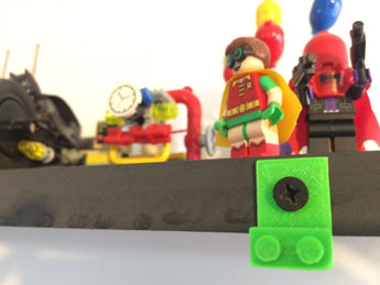 Tämä Lego Minifigure -seinäteline on suunniteltu esittelemään minihahmoja taka-asusteilla. Minihahmo on kiinnitetty jalkojen taakse.