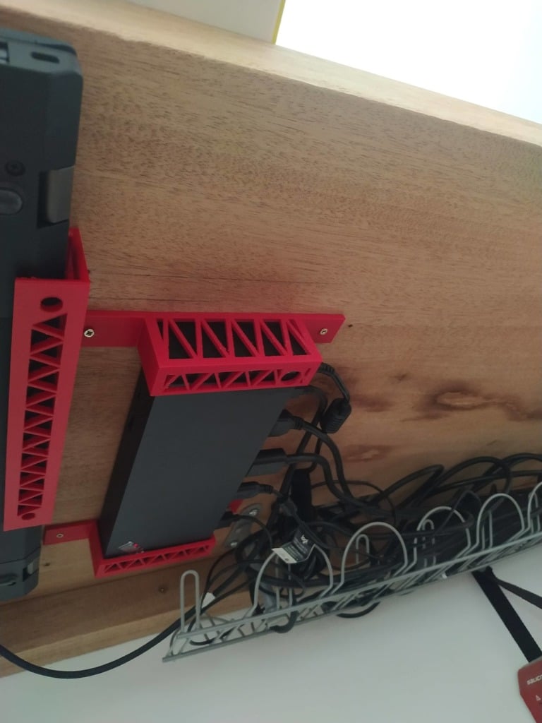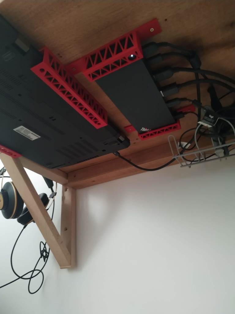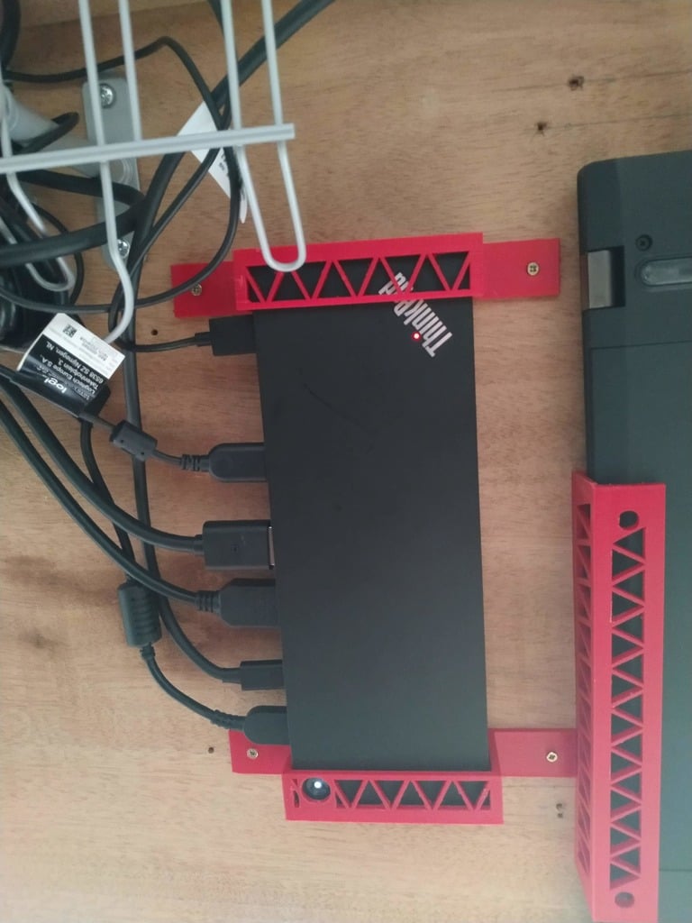 Pöydän alle asennettava teline Lenovo ThinkPad Thunderbolt 3 Dock -telakalle. Asenna telakka pöydän alle säästääksesi tilaa ja pitääksesi työtilasi siistinä ja järjestyksessä. Kiinnityskappaleessa on reikä painiketta varten ja kaksi reikää kiinnitystä varten kahdella 2,5 mm:n ruuvilla.