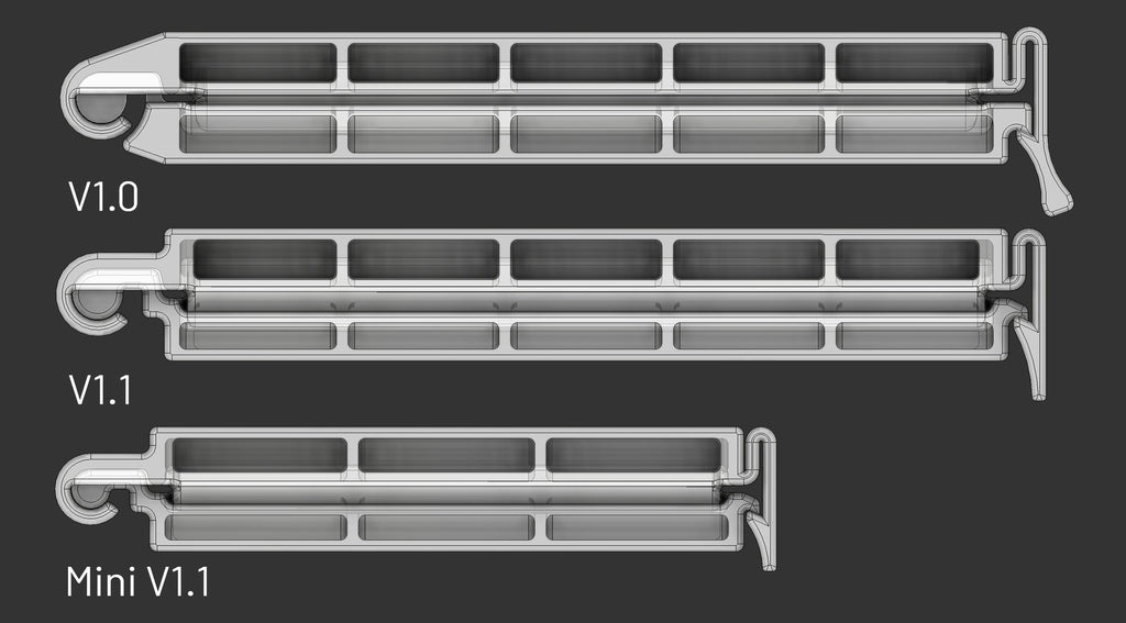 Vuonna 2021 lisättiin miniversio, jossa on 68 mm leveä puristusalue, jossa käytetään noin 50 % vähemmän materiaalia kuin V1.1:ssä ja jossa puristus on tiukempi (0,25 mm:n ontelo verrattuna 0,5 mm:n onteloon) pienten ja ohuiden pussien tiivistämiseksi tehokkaammin.