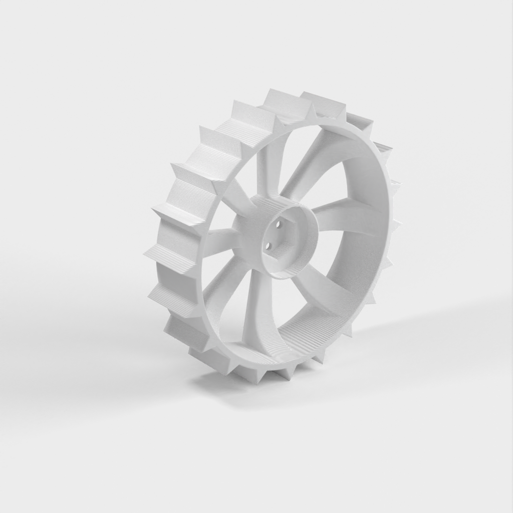 - Sisältää 3D-tulostettavat STL-tiedostot pyörälle ja mukana tulevan suojuksen.