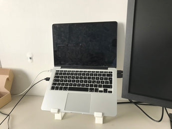 Tämä tyylikäs MacBook Pro 13" -teline on suunniteltu parantamaan työpaikkaasi merkittävästi. MacBookin nostaminen luo enemmän tilaa työpöydällesi, mikä edistää järjestäytyneempää ja minimalistisempaa asennusta.