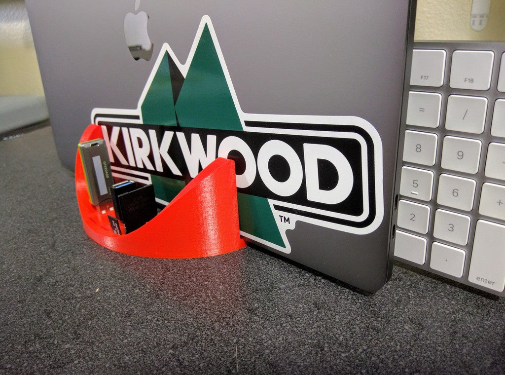 Se sisältää omat paikat Apple-merkkiselle näppäimistölle, kahdelle USB-A-laitteelle (esim. USB-avaimet), kahdelle USB-C-sovittimelle, yhdelle SD-kortille ja kolmelle Micro SD-kortille. Tämä ratkaisu edistää järjestelmällisempää ja toimivampaa työtilaa kokoamalla tärkeät lisävarusteet yhteen paikkaan.