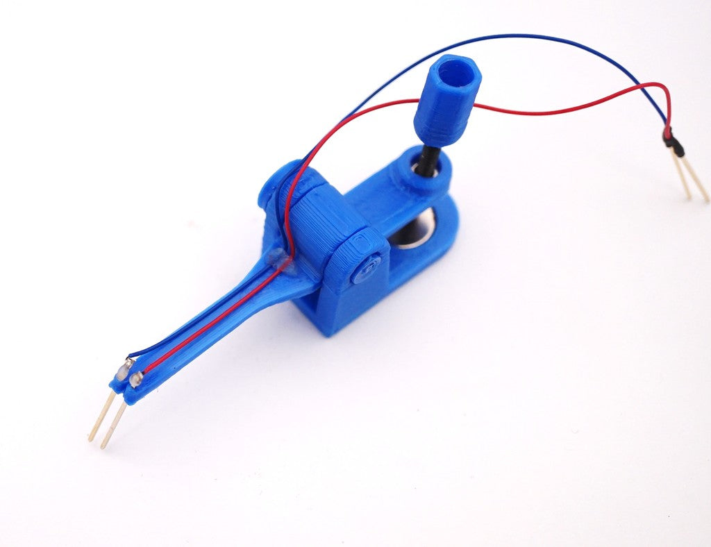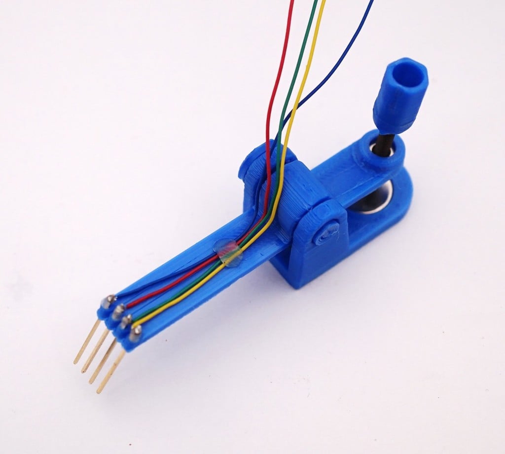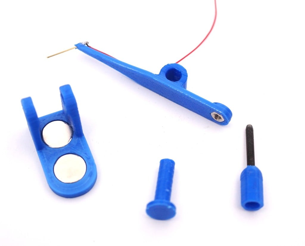 Probe on myös suunniteltu mahdollistamaan tarkkoja asennuksia, jotka voidaan saavuttaa lämmittämällä käsivarren muovia tippojen ympärillä, mikä varmistaa, että ne pysyvät paikoillaan käytön aikana. Suosittelemme käyttämään rautaruuvia M3 maksimaalisen toiminnallisuuden ja vakauden saavuttamiseksi, kun probe ei ole käytössä.