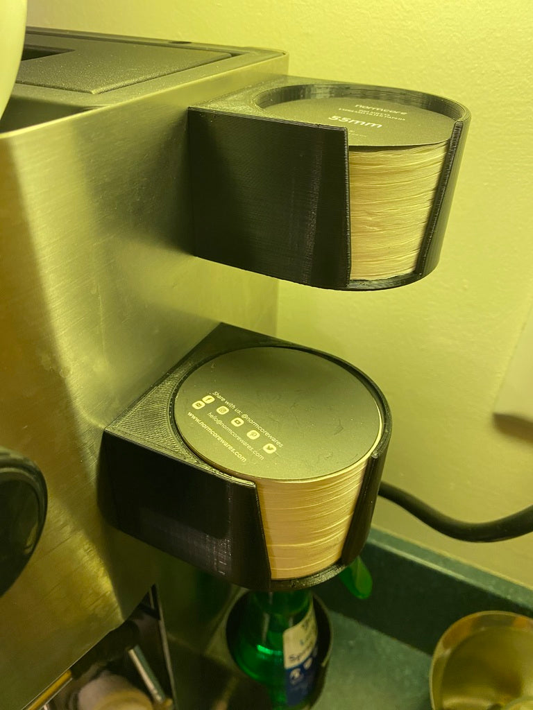 Magneettiset espressosuodatinpidikkeet on suunniteltu tarjoamaan käytännöllinen ja järjestelmällinen ratkaisu espressosuodatinpapereiden säilytykseen. Nämä pidikkeet, jotka ovat yhteensopivia sekä 55 mm:n että 58 mm:n suodattimien kanssa, varmistavat, että paperisi ovat aina käden ulottuvilla, kun valmistat kahvia. Vahvan magneettikiinnityksen ansiosta pidike voidaan helposti sijoittaa espressokoneeseesi, mikä luo siistin ja tehokkaan työtilan. Tämä lisävaruste on ihanteellinen lisä kahvilaitteistoosi, mukaan lukien erilaiset espresso-tarvikkeet, ja se voi edistää virtaviivaisempaa valmistusprosessia riippumatta siitä, omistatko Rocket Espresso -koneen vai jonkin muun mallin.