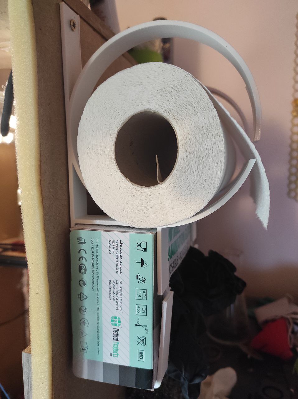 Seinään kiinnitettävä pidike käsineille ja paperipyyhkeille, täydellinen hartsin 3D-tulostushuoneeseen. Muotoilu on minimalistinen eikä kuluta paljon filamenttia. Tämä pidike on tarpeeksi tukeva, jotta sitä voi käyttää yhdellä kädellä, mikä on ihanteellista silloin, kun unohdat laittaa tavarat valmiiksi etukäteen. Tämä pidike tekee työskentelystä hartsitulostimesi kanssa helpompaa ja organisoidumpaa.
