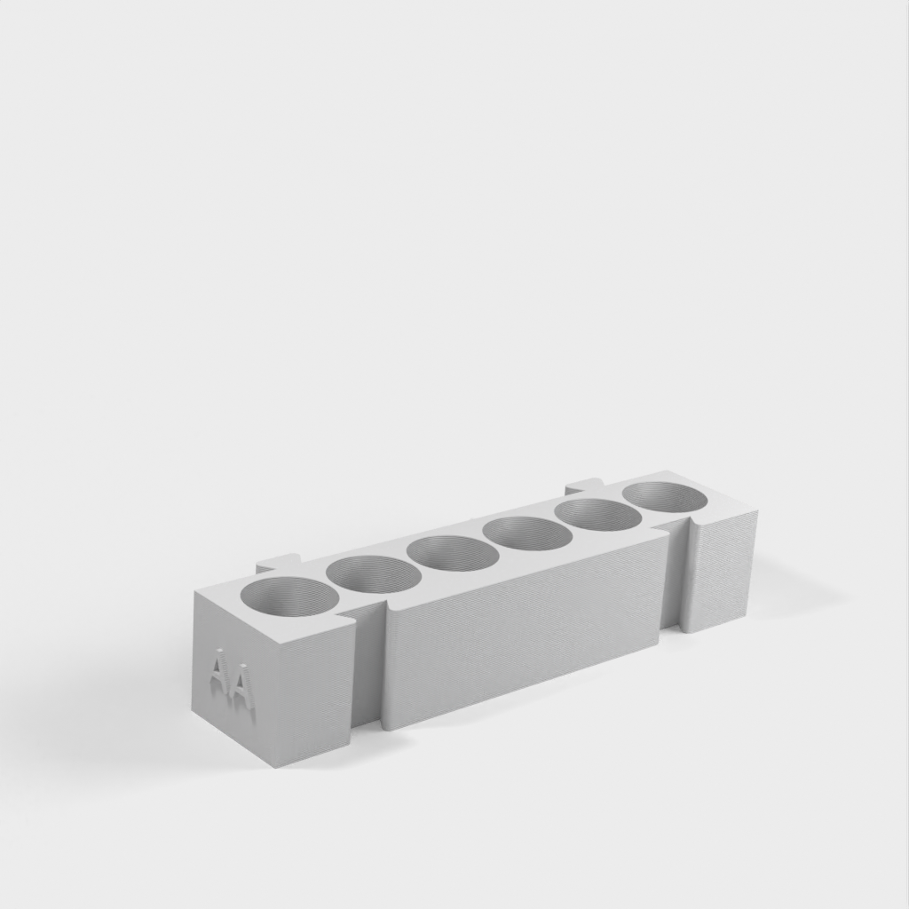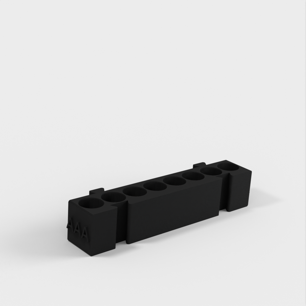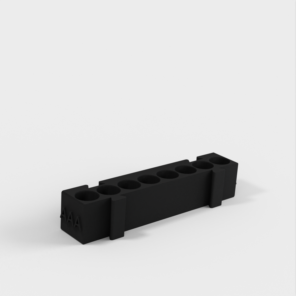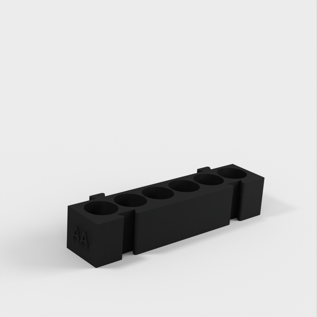 Tämä on modulaarinen paristopidike, jossa on eri pidikkeet kullekin paristotyypille. Kaikki pidikkeet ovat samanpituisia ja ne voidaan kiinnittää toisiinsa haluamallasi tavalla. Se on ihanteellinen ratkaisu työpöydän järjestämiseen ja paristojen seuraamiseen. AA-paristopidikkeen ja kolikkopidikkeen lisääminen mallistoon lisää sen toimivuutta entisestään.