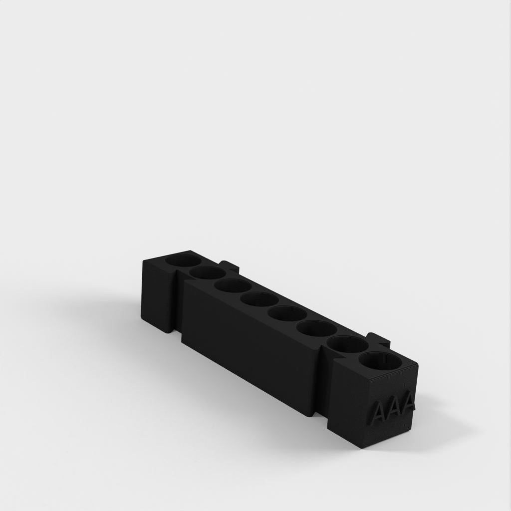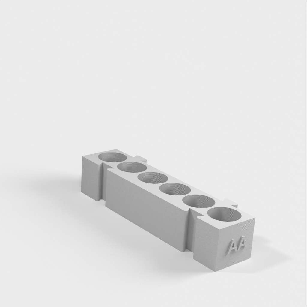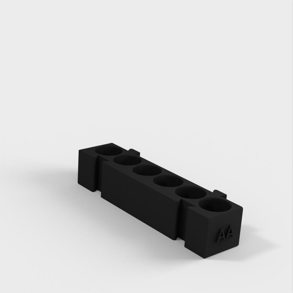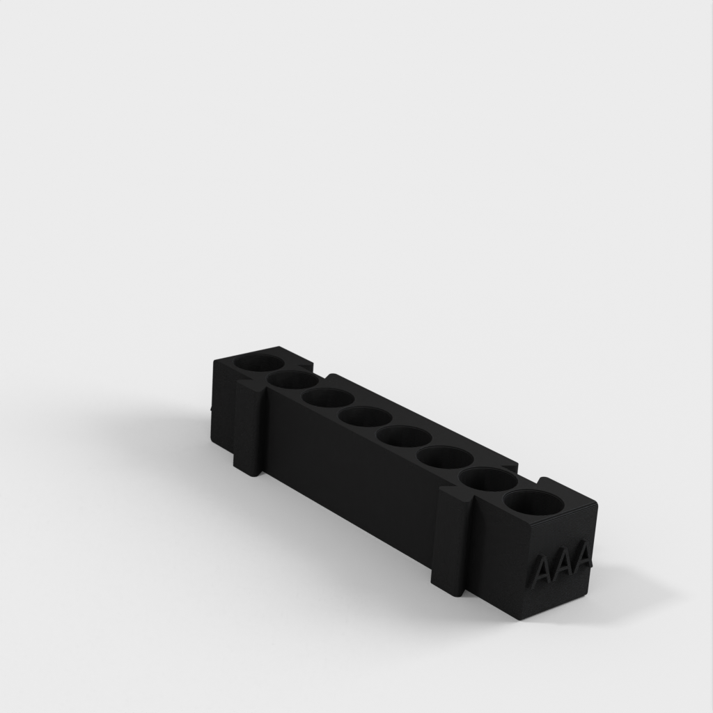 Tämä on modulaarinen paristopidike, jossa on eri pidikkeet kullekin paristotyypille. Kaikki pidikkeet ovat samanpituisia ja ne voidaan kiinnittää toisiinsa haluamallasi tavalla. Se on ihanteellinen ratkaisu työpöydän järjestämiseen ja paristojen seuraamiseen. AA-paristopidikkeen ja kolikkopidikkeen lisääminen mallistoon lisää sen toimivuutta entisestään.
