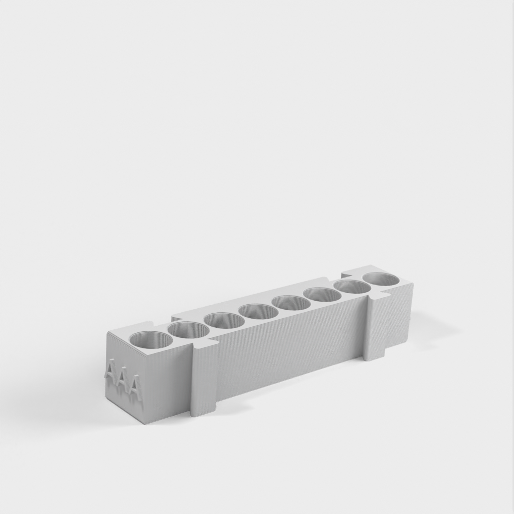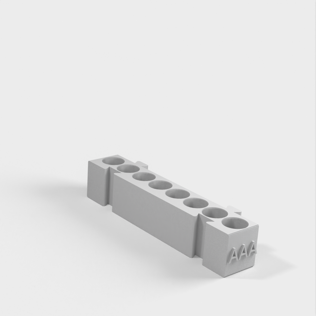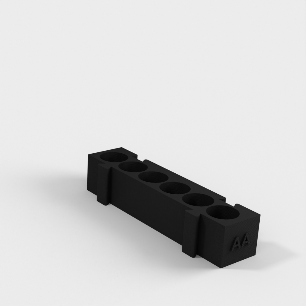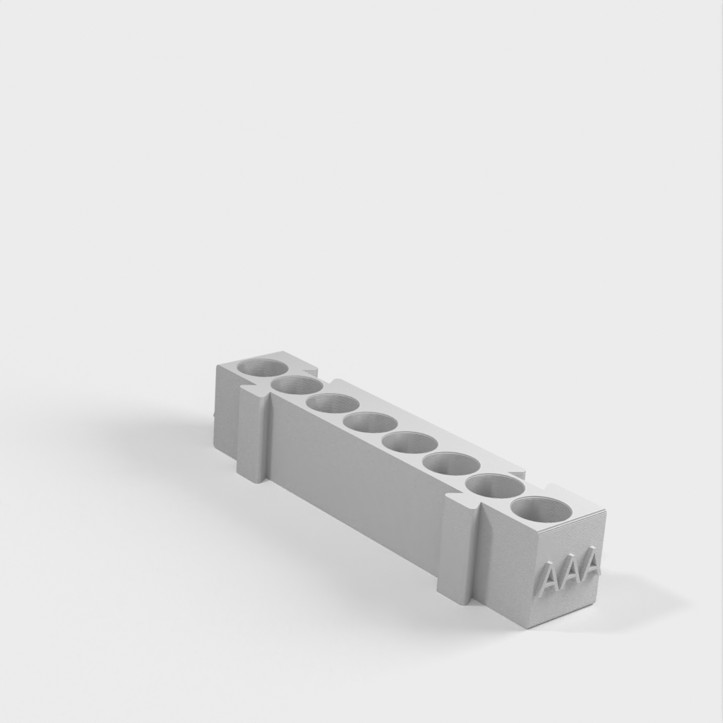 Tämä on modulaarinen paristopidike, jossa on eri pidikkeet kullekin paristotyypille. Kaikki pidikkeet ovat samanpituisia ja ne voidaan kiinnittää toisiinsa haluamallasi tavalla. Se on ihanteellinen ratkaisu työpöydän järjestämiseen ja paristojen seuraamiseen. AA-paristopidikkeen ja kolikkopidikkeen lisääminen mallistoon lisää sen toimivuutta entisestään.