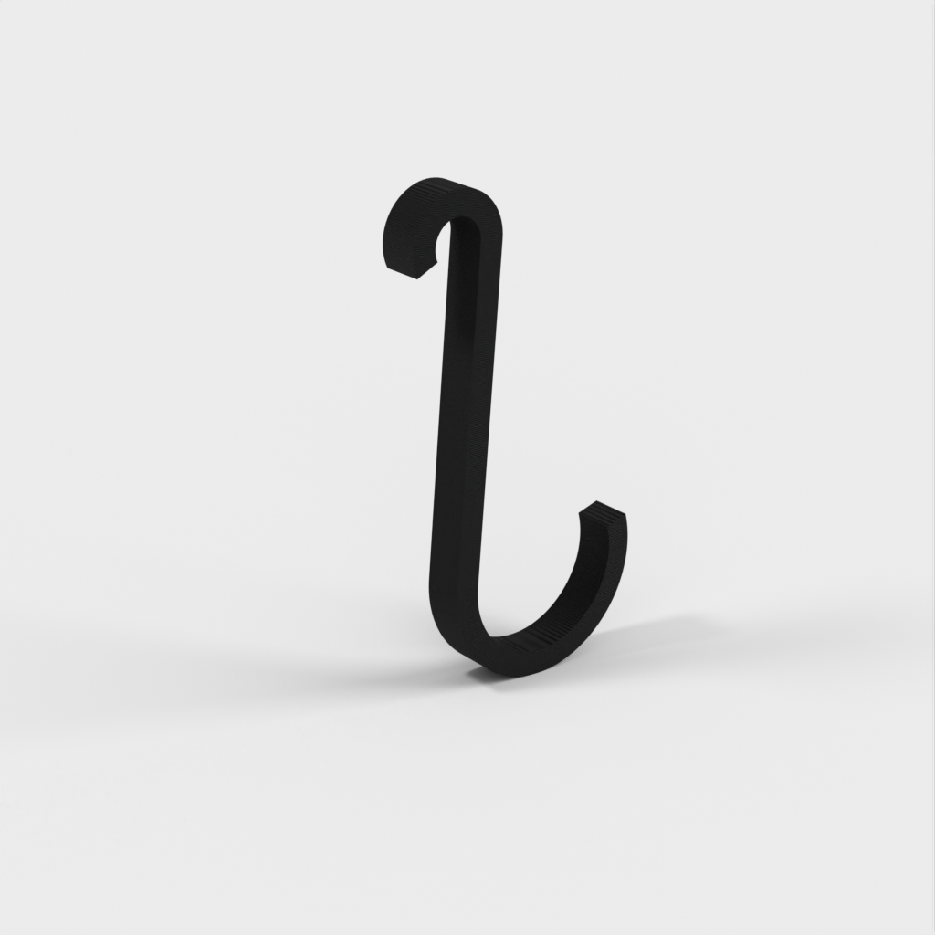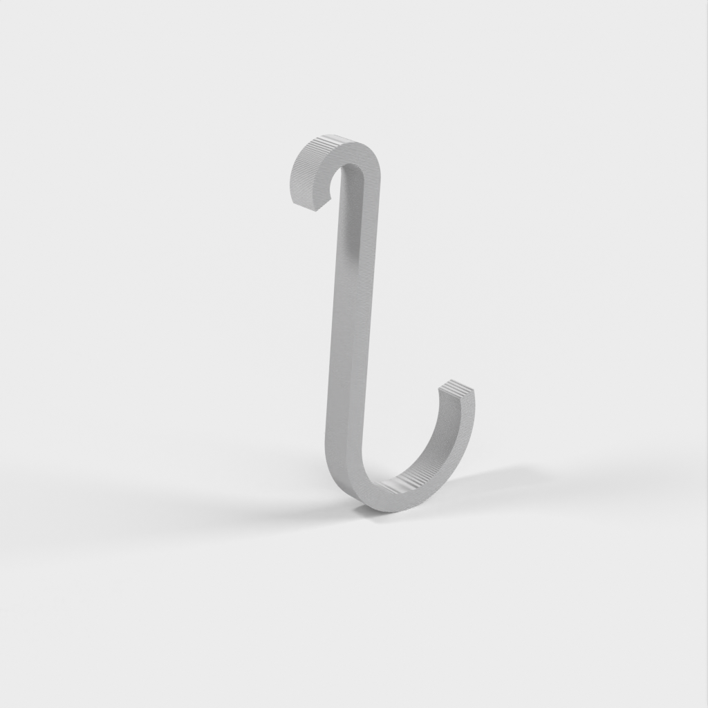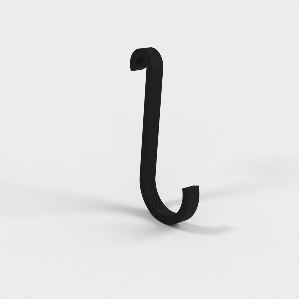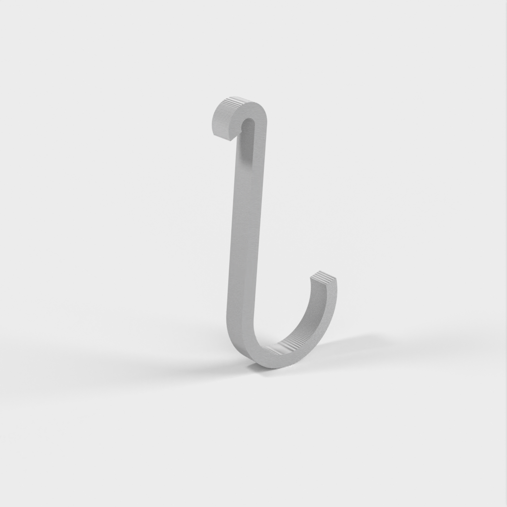 Säädettävä koukku, joka sopii täydellisesti IKEA Omar -hyllyn tankoihin. Käytämme sitä keittiövälineiden ripustamiseen. Koukussa on tiukka istuvuus, joten se ei putoa tai liiku liikaa, kun ripustat tai otat tavaroita.
