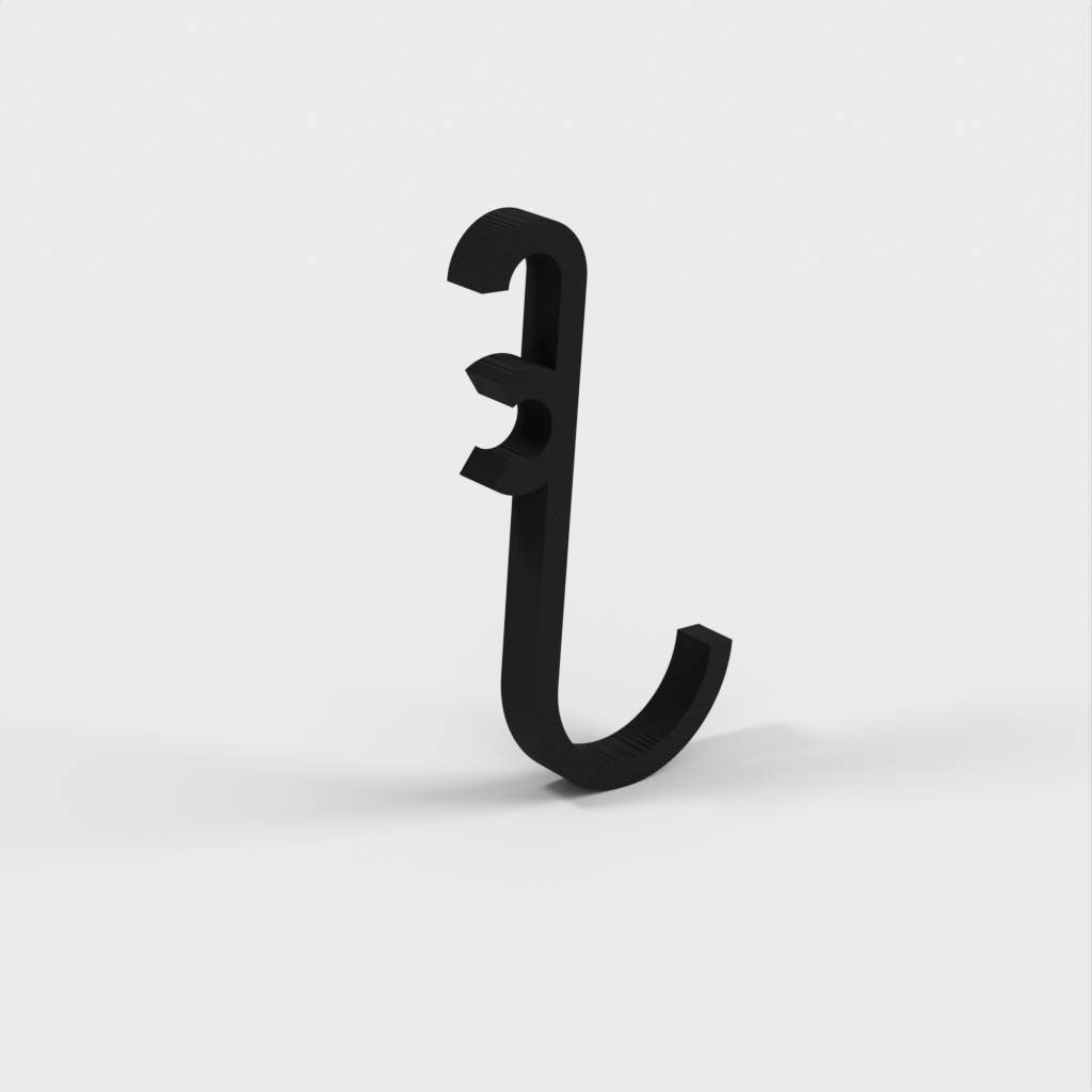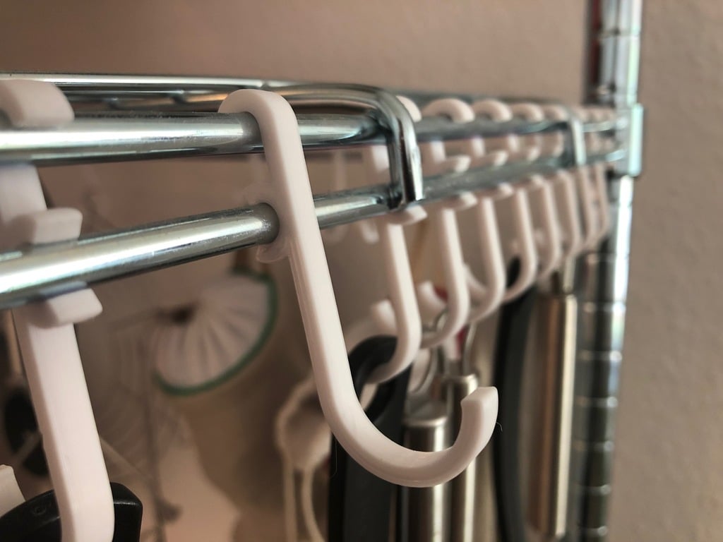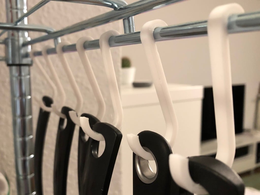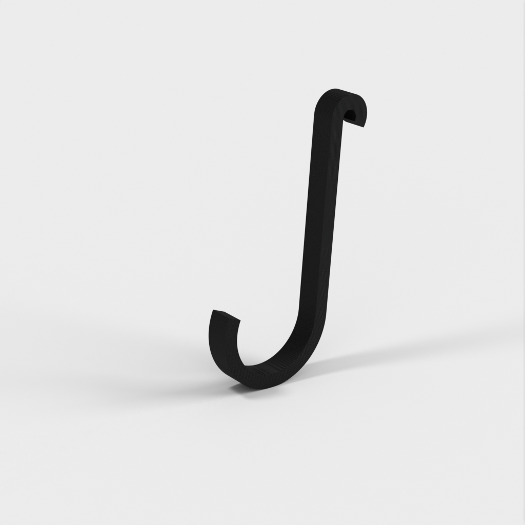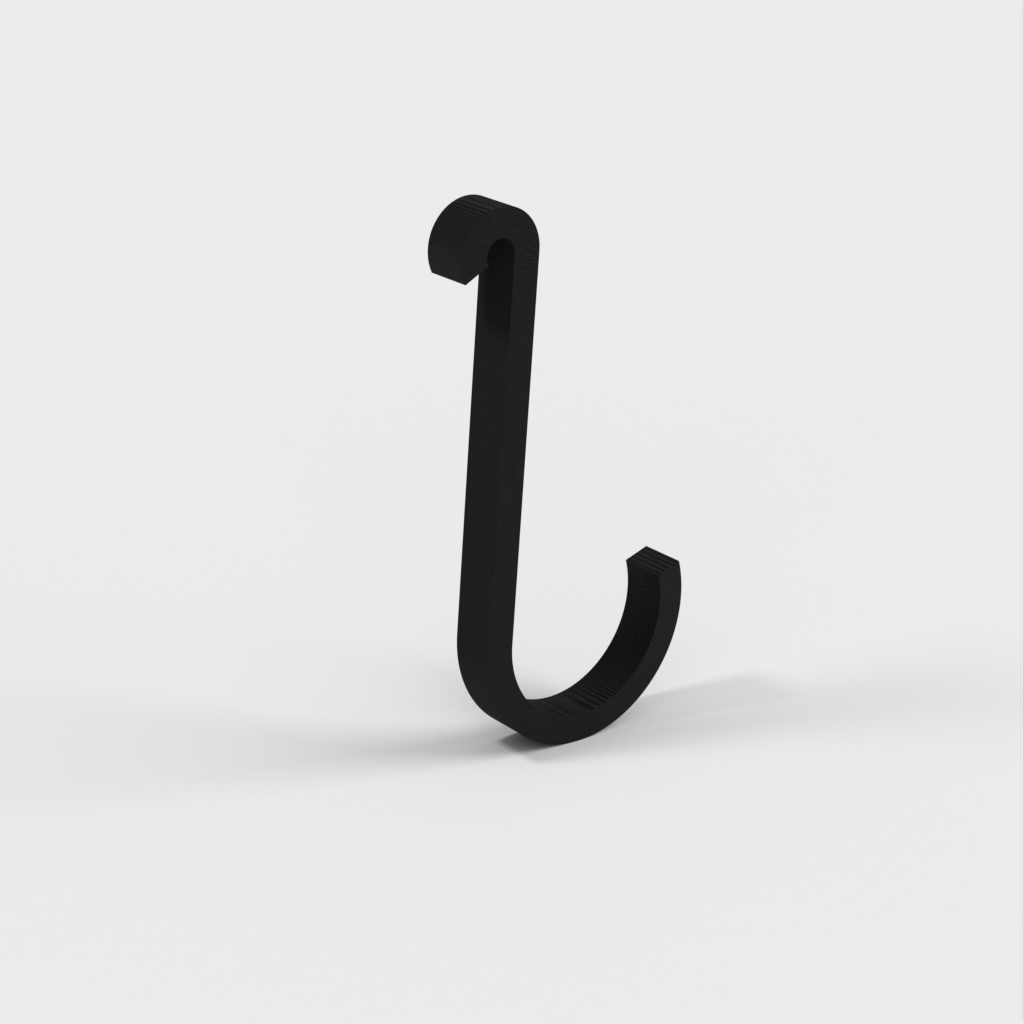 Säädettävä koukku, joka sopii täydellisesti IKEA Omar -hyllyn tankoihin. Käytämme sitä keittiövälineiden ripustamiseen. Koukussa on tiukka istuvuus, joten se ei putoa tai liiku liikaa, kun ripustat tai otat tavaroita.