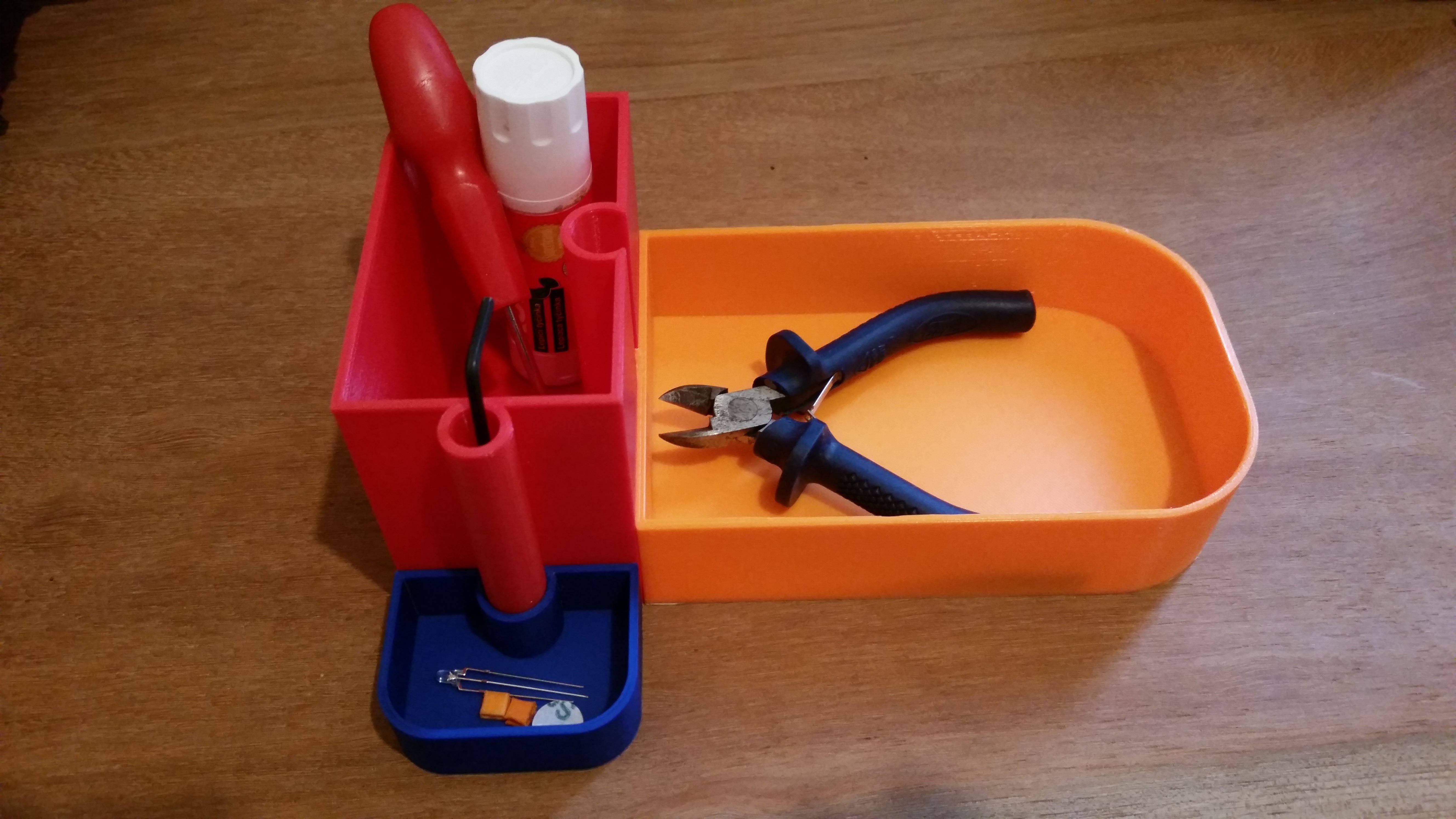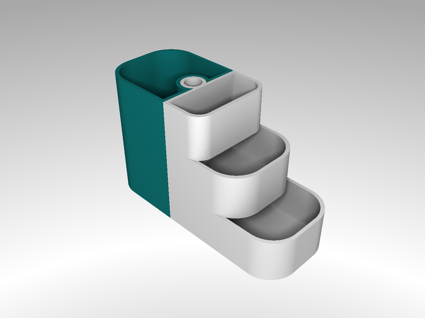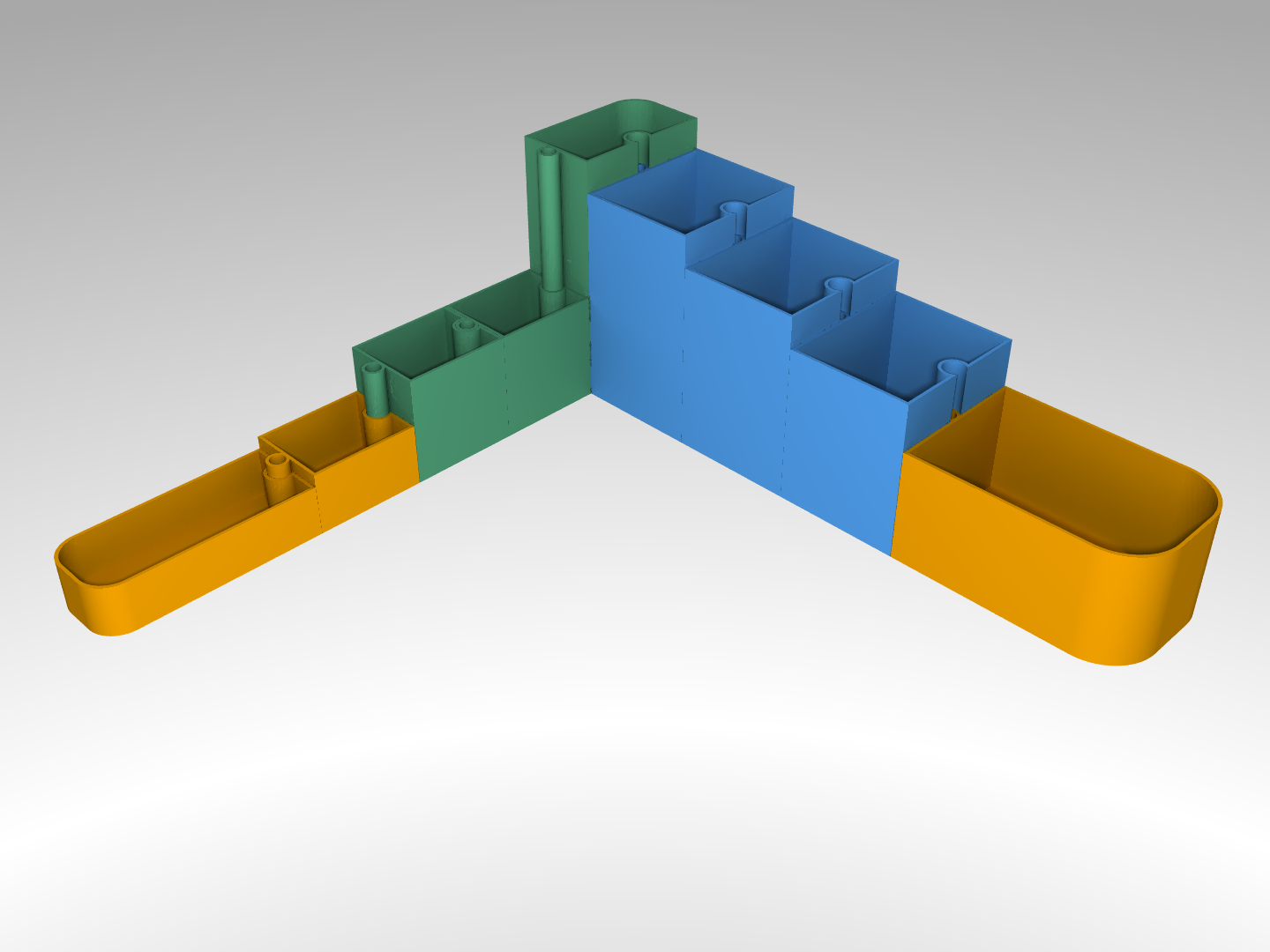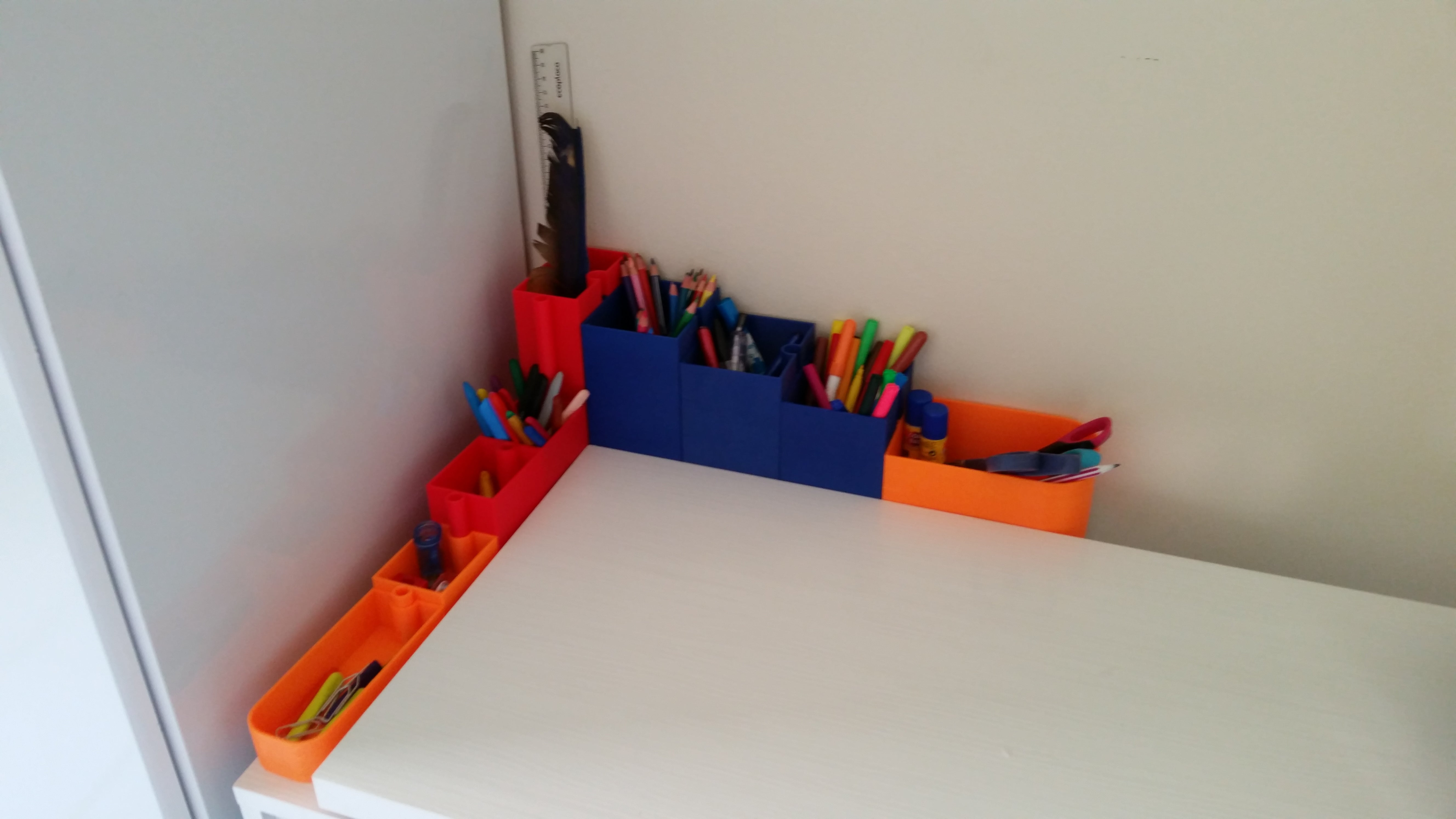 Tämä on räätälöity versio Unixin pencilboxista. Voit käyttää lähdetiedostoa OpenSCAD:n kanssa luodaksesi mukautetun asettelun. Järjestä työpöytäsi tällä modulaarisella ja mukautettavalla työpöydän organisoijalla, joka on ihanteellinen kynien ja kynien pitämiseen siististi ja järjestyksessä.