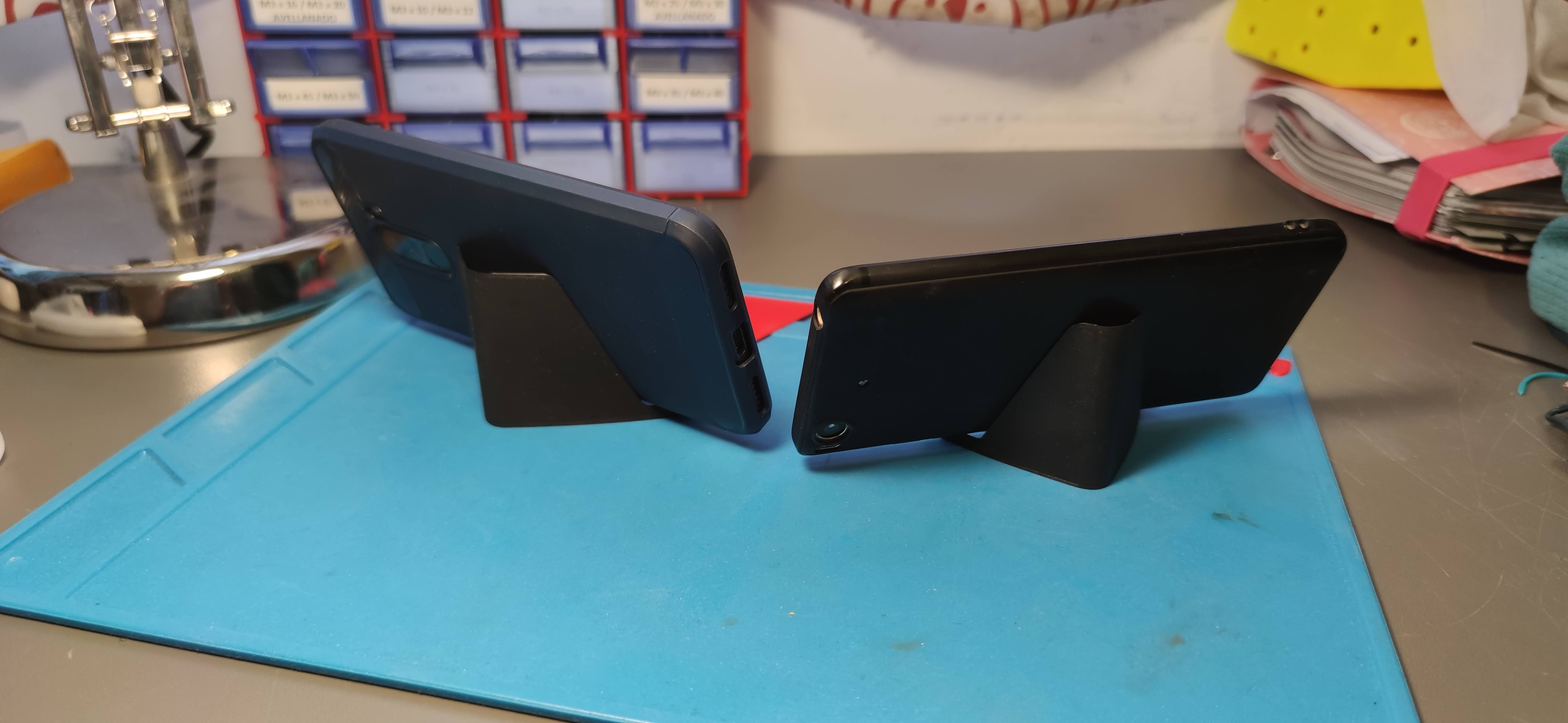 Tämä on kannettava ja kevyt puhelinpidike, joka sopii puhelimen kotelon alle. Täydellinen lapsille, kun olet liikkeellä ja sinun täytyy pitää puhelintasi jotenkin. Näennäisestä hauraudestaan huolimatta se on erittäin kestävä ja puhelin pitää täydellisesti. Voit muuttaa katselukulmaa sulkemalla tai avaamalla jalat. Saatavilla on kaksi versiota, toinen suurille puhelimille (6-7 tuumaa) ja toinen pienille puhelimille (4-5 tuumaa), joten voit valita puhelimeesi parhaiten sopivan.