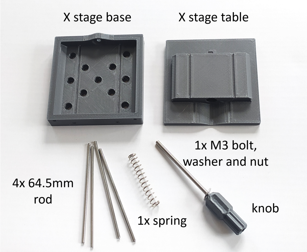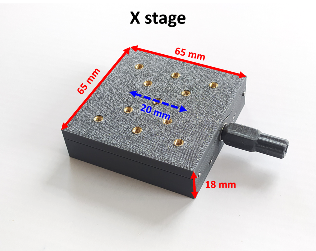 Tulostettu lineaarinen vaihe on käytännöllinen ratkaisu tarkkuuspaikannukseen, jonka tarkkuus on jopa 10 mikronia. Suunnittelu on ihanteellinen projekteihin, joissa tarkat liikkeet ovat välttämättömiä. Se käyttää 3D-tulostettuja osia yhdessä 2 mm:n metallitangot, 40 mm:n jousen ja 55 mm:n M3-pultin, jossa on mutteri ja alusmutteri, varmistaakseen vakauden ja toimivuuden.