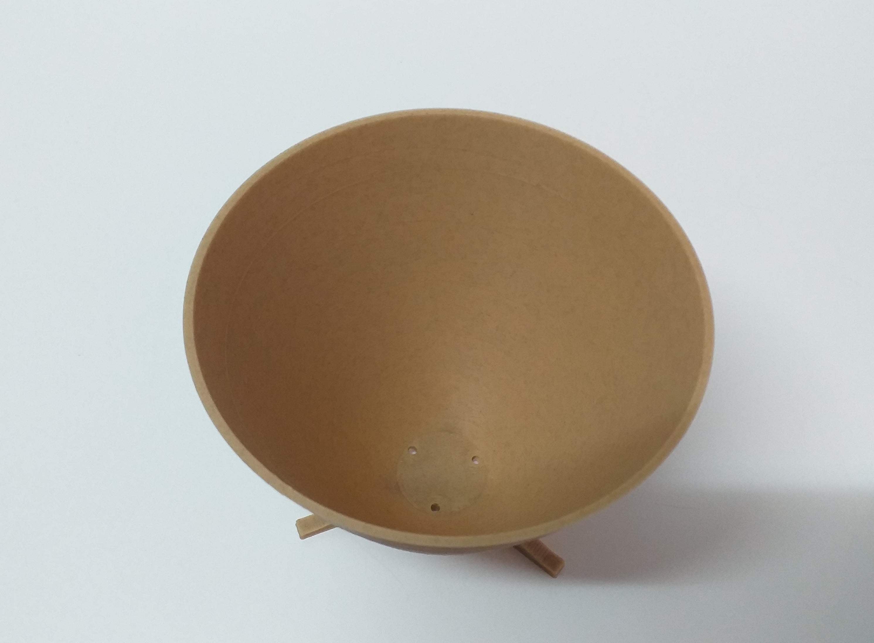 Parabolinen kasviastia jaloilla ja valutuslevyllä varustettuna