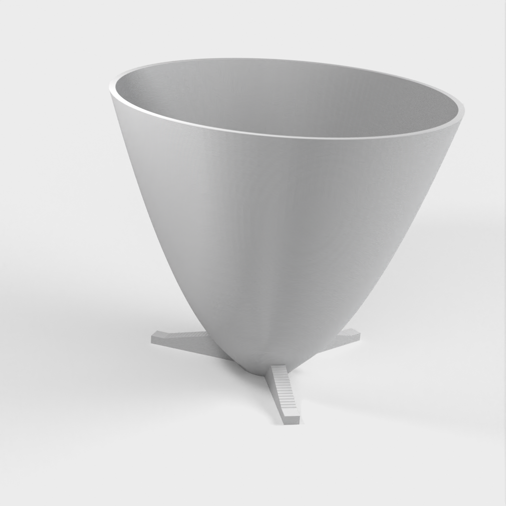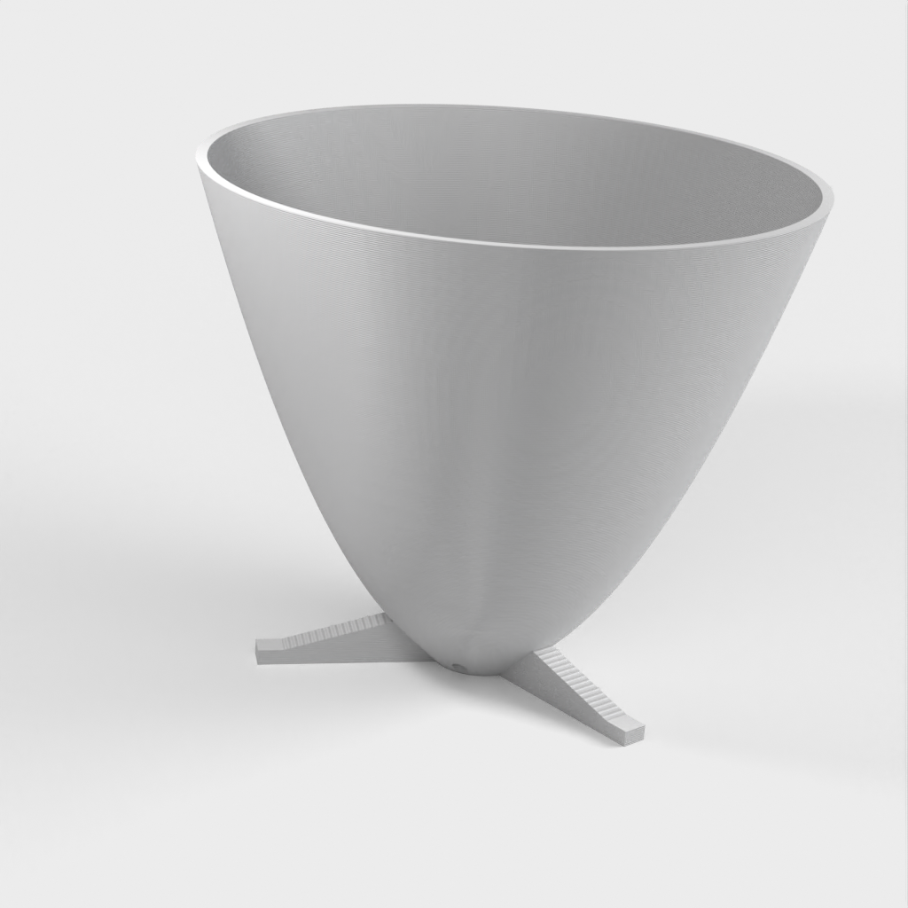 Tämä on parabolinen istutusastia, jossa on omat jalat ja itsenäinen salaojituslevy. Se on suunniteltu tulostettavaksi ilman tukia. Vaikka hahmo on tulostettu PLA:sta, voit käyttää myös muita materiaaleja oikeilla asetuksilla. Prusa-filamenttia suositellaan, mutta suosikkifilamenttini näihin ruukkuihin on Mukha de Fillamentum.