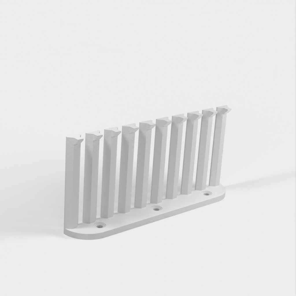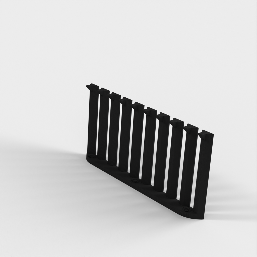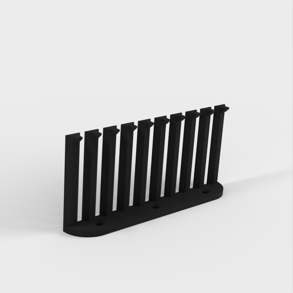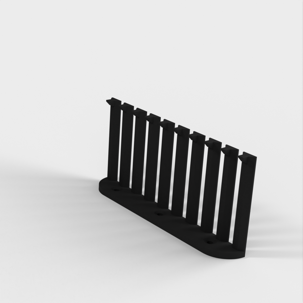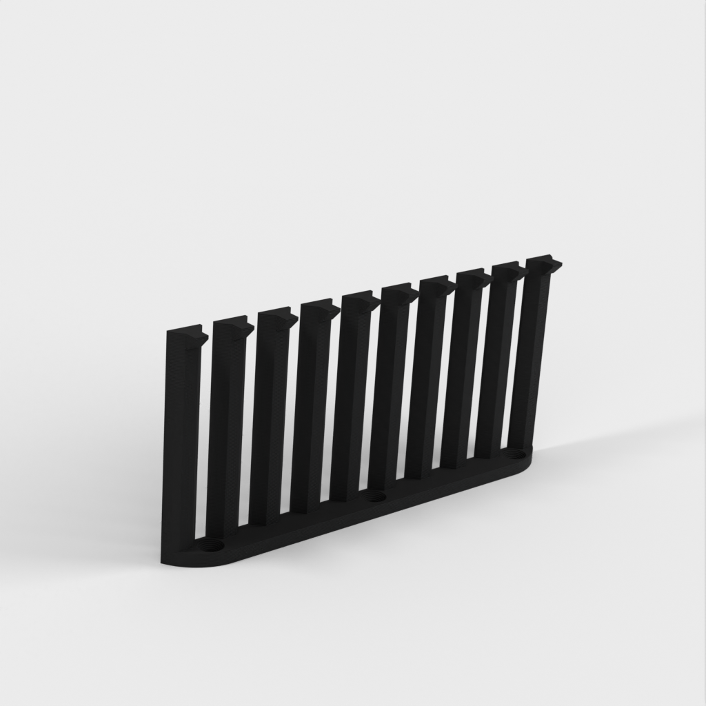 Tämä on parametrinen kaapelinjärjestäjä, joka on suunniteltu järjestämään kaapelit tehokkaasti. Siinä on 10 käsivartta, joten siinä on tilaa 9 kaapelille 4 mm:n välein. Nykyistä muotoilua on parannettu, ja sen takaosan kiinnityskorkeus on matalampi kuin versiossa 1. Ruuvit on suunniteltu niin, että ne on helppo asentaa upotetuilla M4-ruuveilla. Se sopii täydellisesti kaikkiin laboratorioihin tai työpaikoille, joissa tarvitaan kaapeleiden järjestämistä.