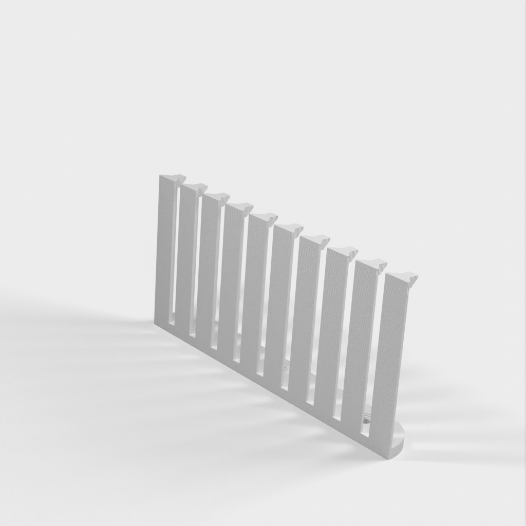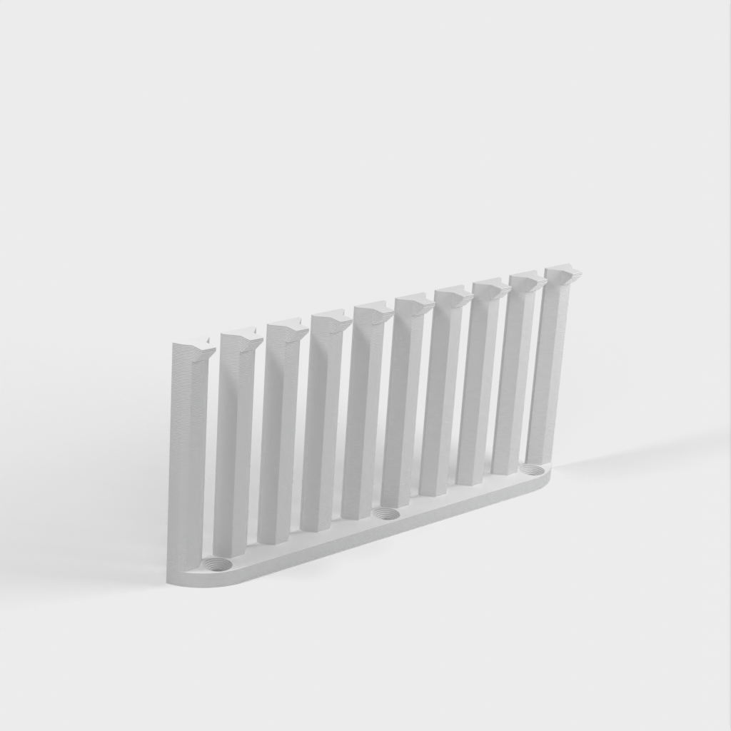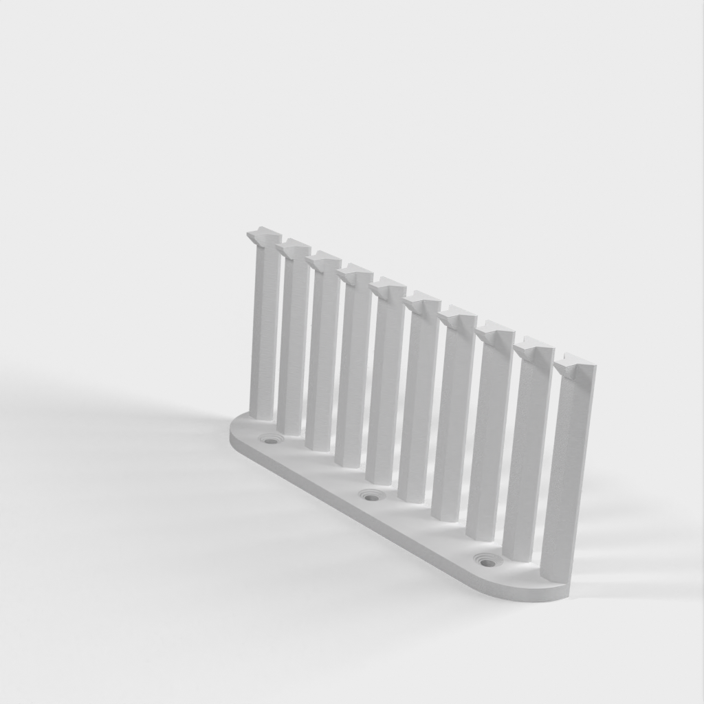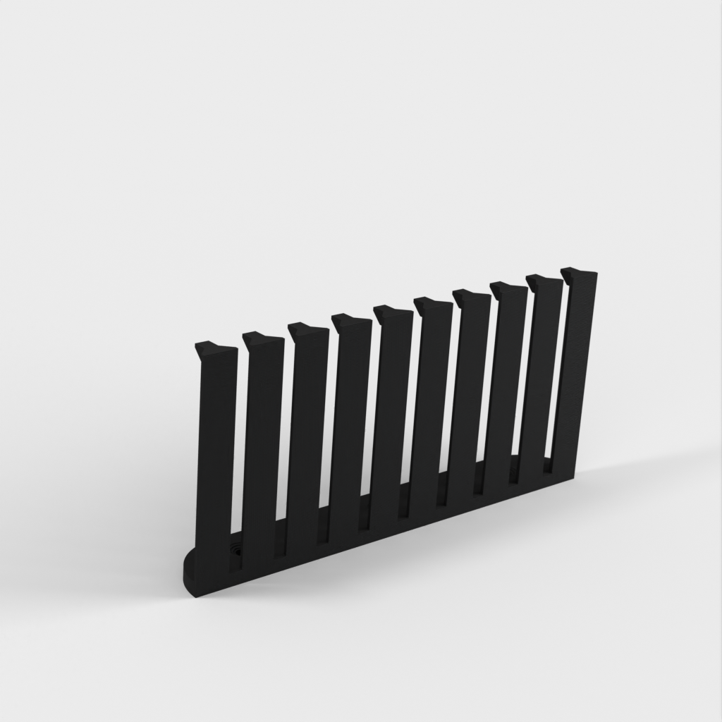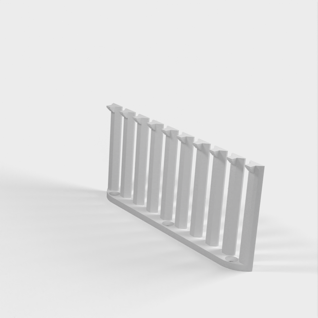 Tämä on parametrinen kaapelinjärjestäjä, joka on suunniteltu järjestämään kaapelit tehokkaasti. Siinä on 10 käsivartta, joten siinä on tilaa 9 kaapelille 4 mm:n välein. Nykyistä muotoilua on parannettu, ja sen takaosan kiinnityskorkeus on matalampi kuin versiossa 1. Ruuvit on suunniteltu niin, että ne on helppo asentaa upotetuilla M4-ruuveilla. Se sopii täydellisesti kaikkiin laboratorioihin tai työpaikoille, joissa tarvitaan kaapeleiden järjestämistä.