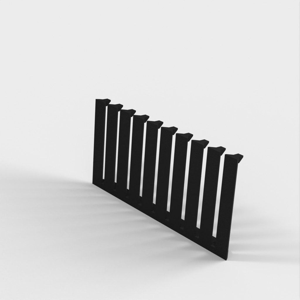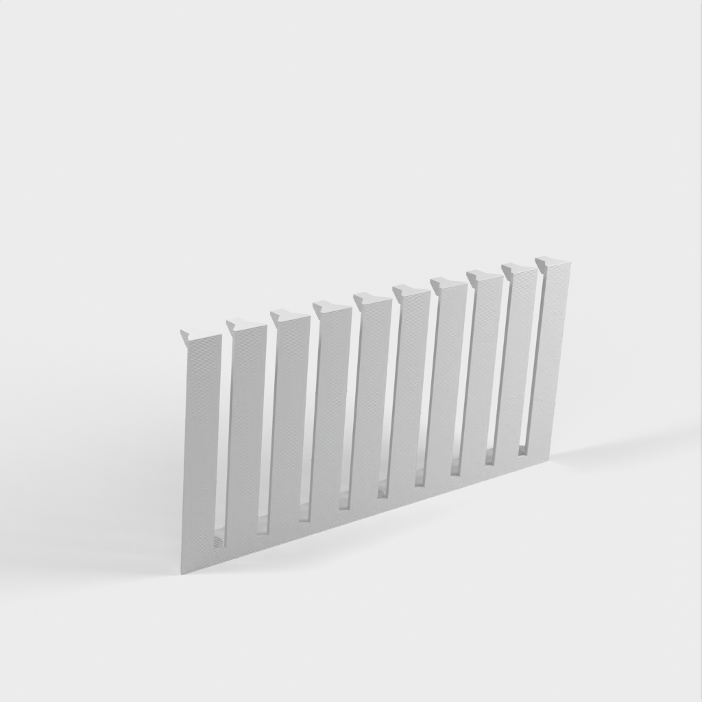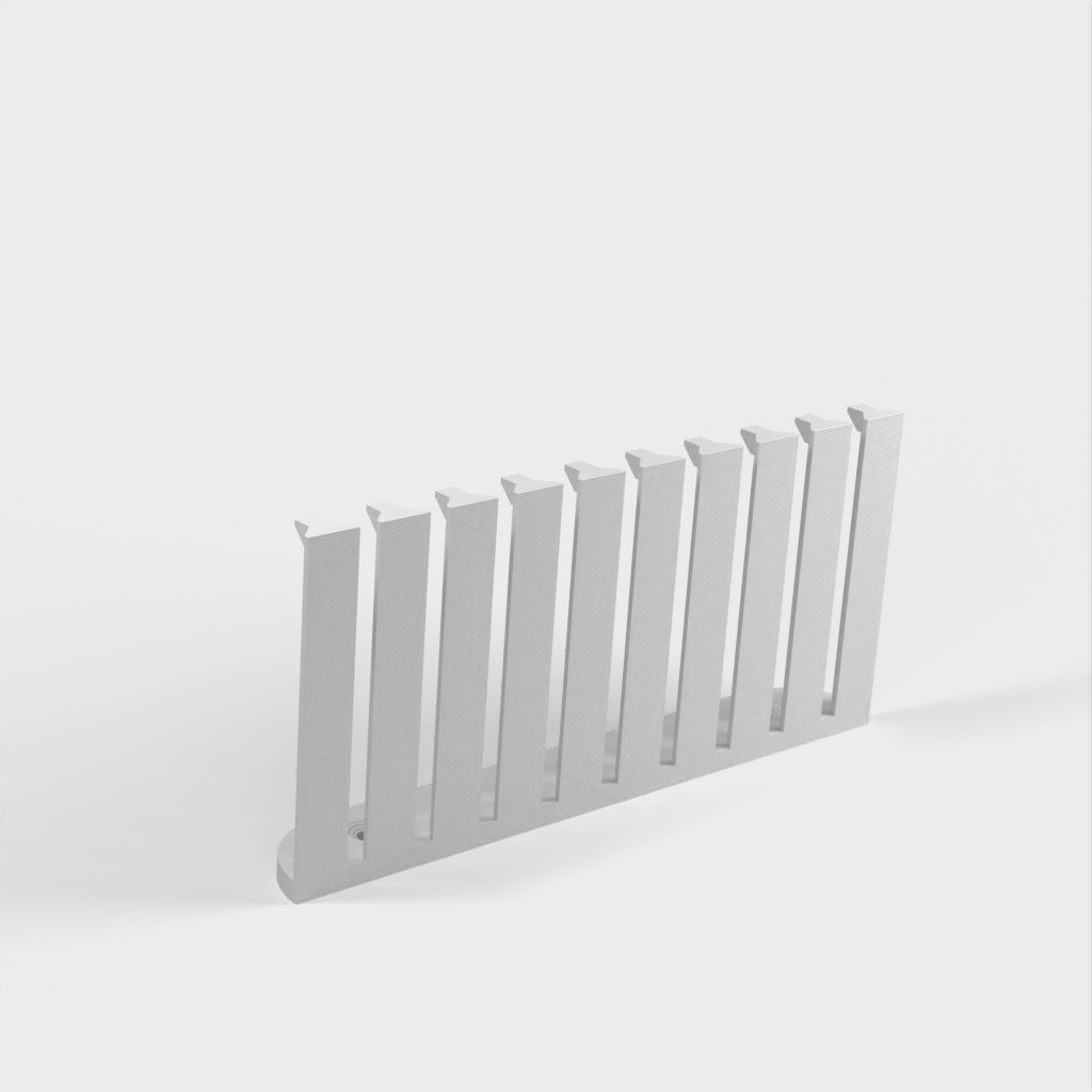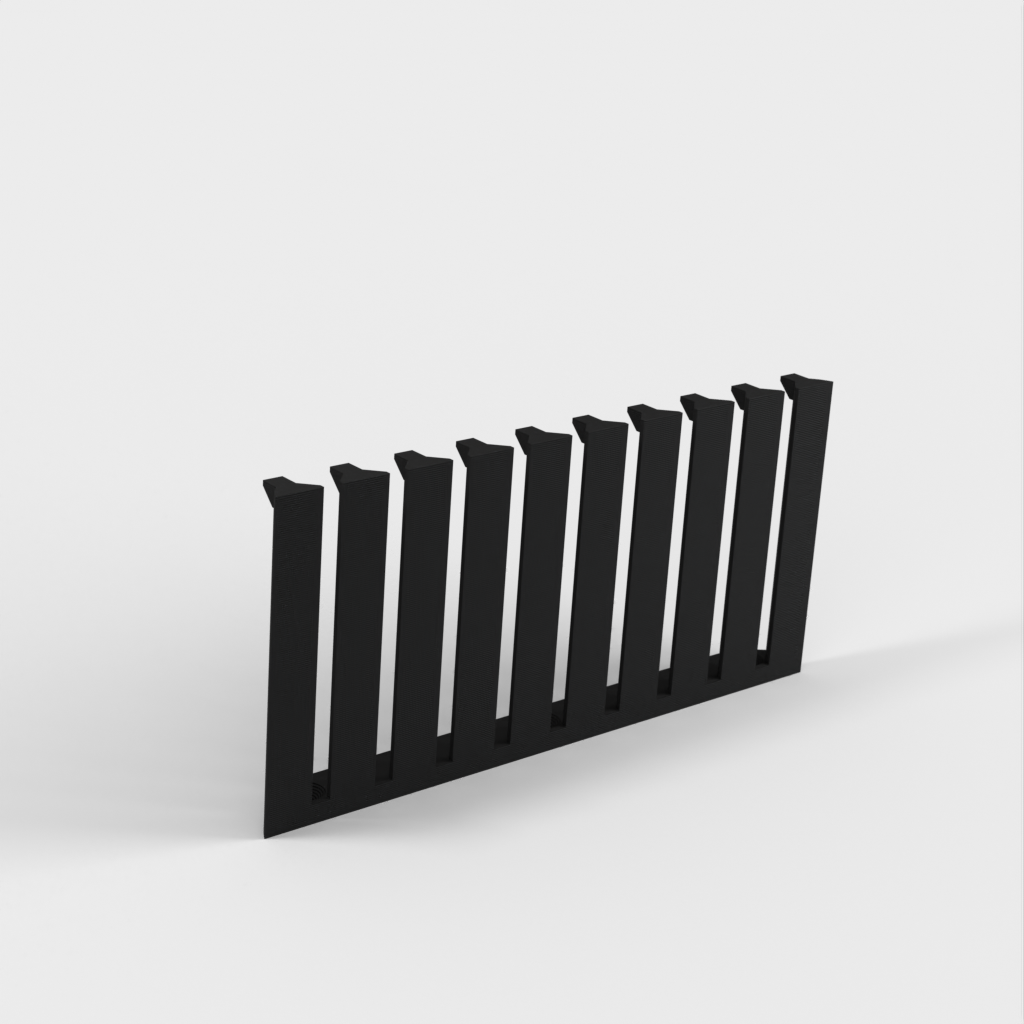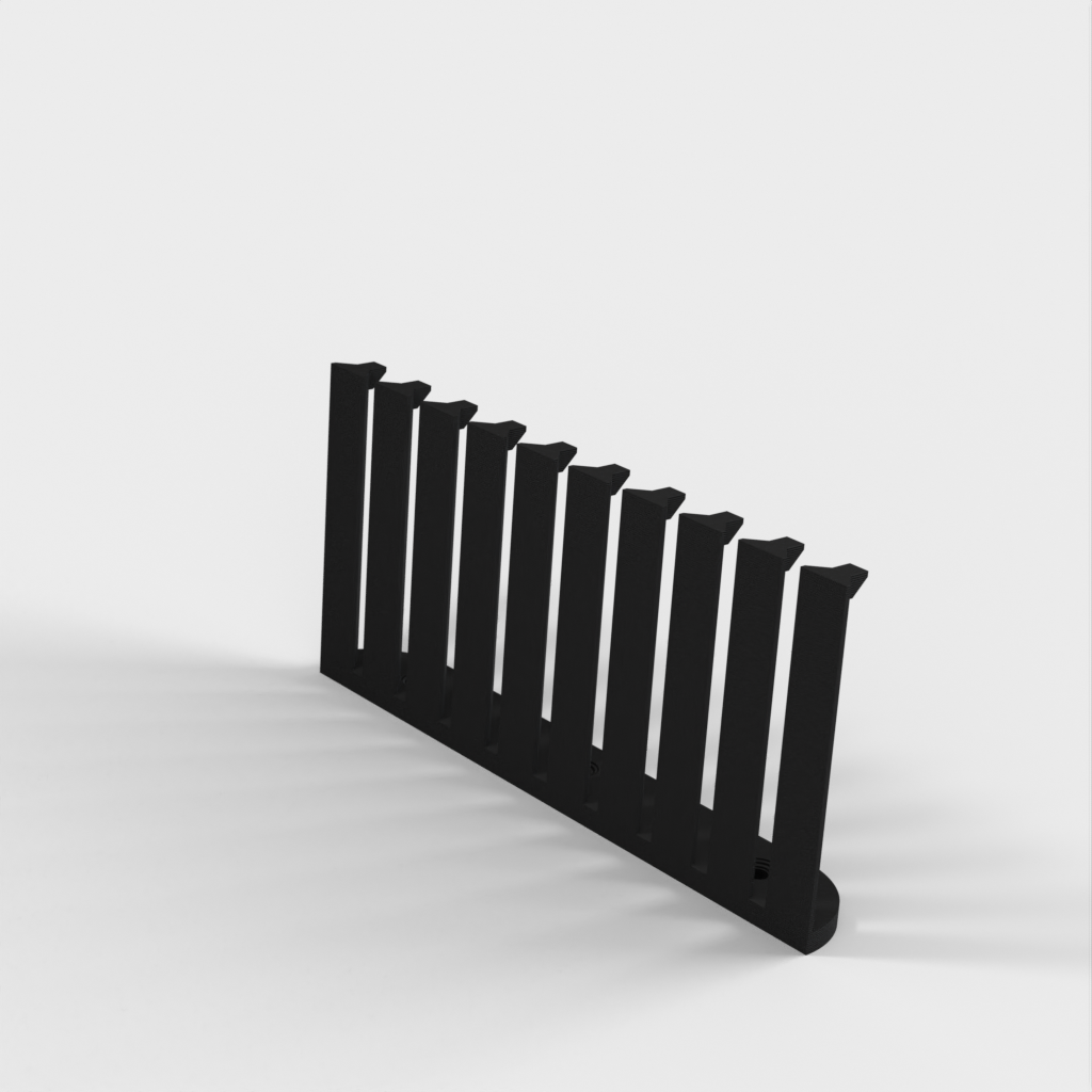 Tämä on parametrinen kaapelinjärjestäjä, joka on suunniteltu järjestämään kaapelit tehokkaasti. Siinä on 10 käsivartta, joten siinä on tilaa 9 kaapelille 4 mm:n välein. Nykyistä muotoilua on parannettu, ja sen takaosan kiinnityskorkeus on matalampi kuin versiossa 1. Ruuvit on suunniteltu niin, että ne on helppo asentaa upotetuilla M4-ruuveilla. Se sopii täydellisesti kaikkiin laboratorioihin tai työpaikoille, joissa tarvitaan kaapeleiden järjestämistä.
