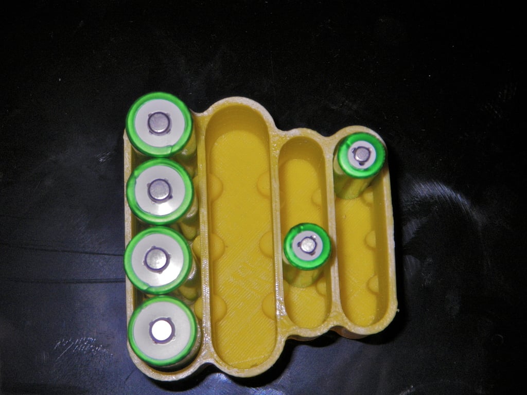Pitäkää paristot paikoillaan tämän paristopidikkeen avulla. Siihen mahtuu jopa 8 AA-paristoa ja 8 AAA-paristoa. Ja tämän paristopidikkeen versiossa 2 on pienet reiät pohjalevyssä, muuten se on identtinen alkuperäisen version kanssa.