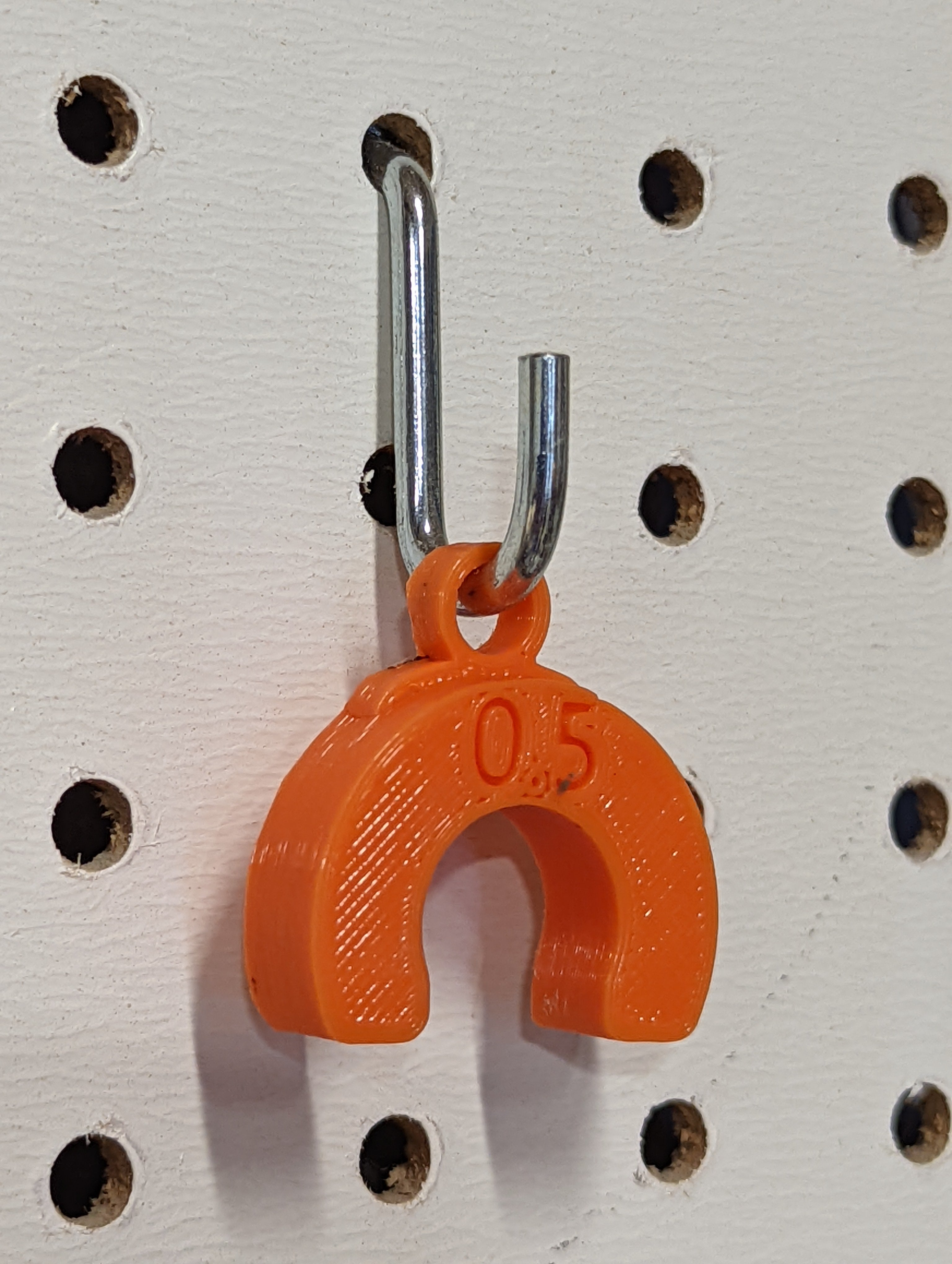 Sharkbite-asennustyökalu irrotusta varten. Tässä työkalussa on reikä, joka on tarkoitettu ripustettavaksi tappitauluun, ja se on merkitty negatiivisella tekstillä, jotta se on helppo tunnistaa. Sharkbite-kiinnikkeen irrotustyökalu voi helpottaa ja tehostaa putkiasennusten parissa työskentelyä.