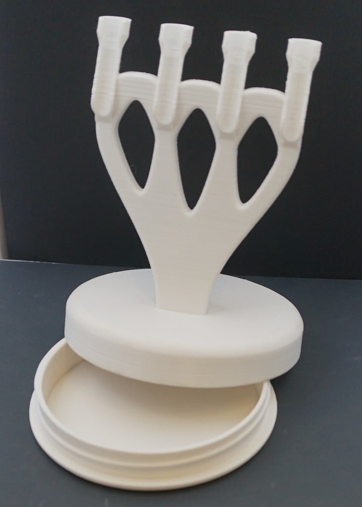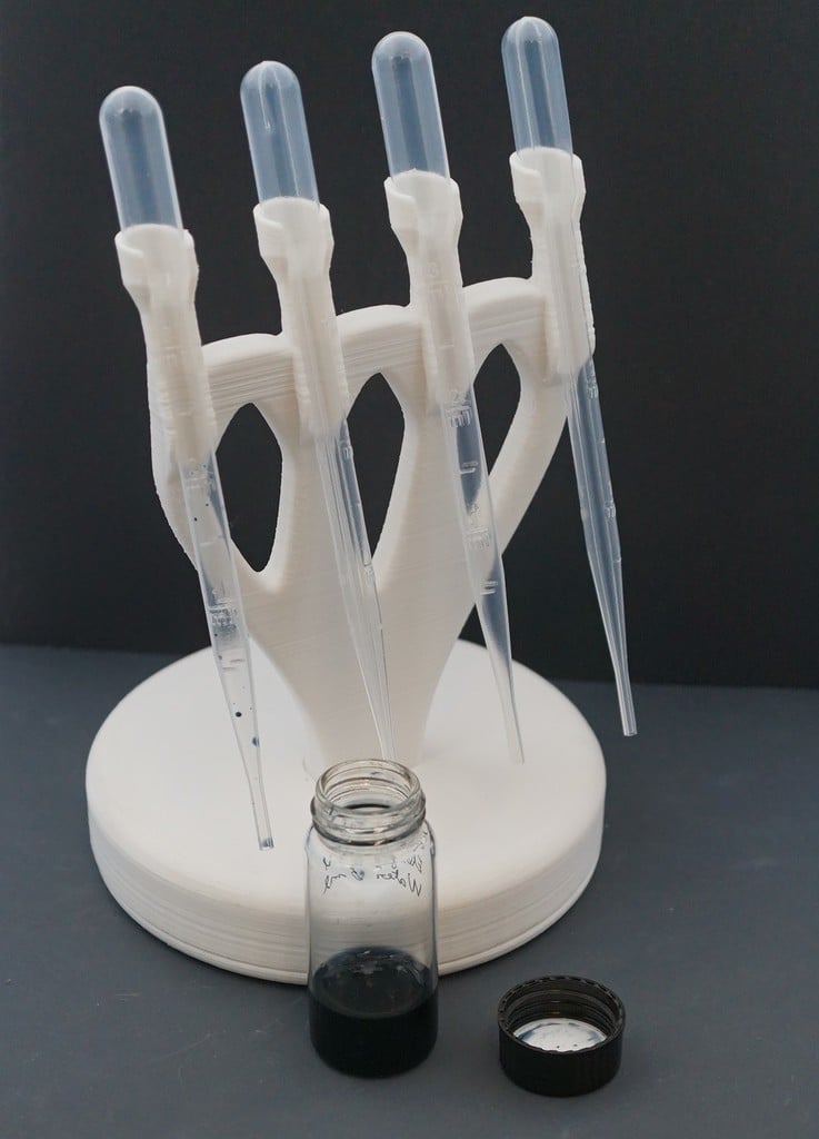 Holder voidaan helposti kiinnittää metallilevylle M3-ruuvilla, mikä mahdollistaa asetuksesi mukauttamisen tarpeidesi mukaan. Integroitu pohja voidaan tulostaa kahdessa osassa, joten voit täyttää sen hiekalla tai muulla materiaalilla vakauden lisäämiseksi, mikä tekee siitä joustavan ja hyödyllisen ratkaisun laboratorio käyttöön.