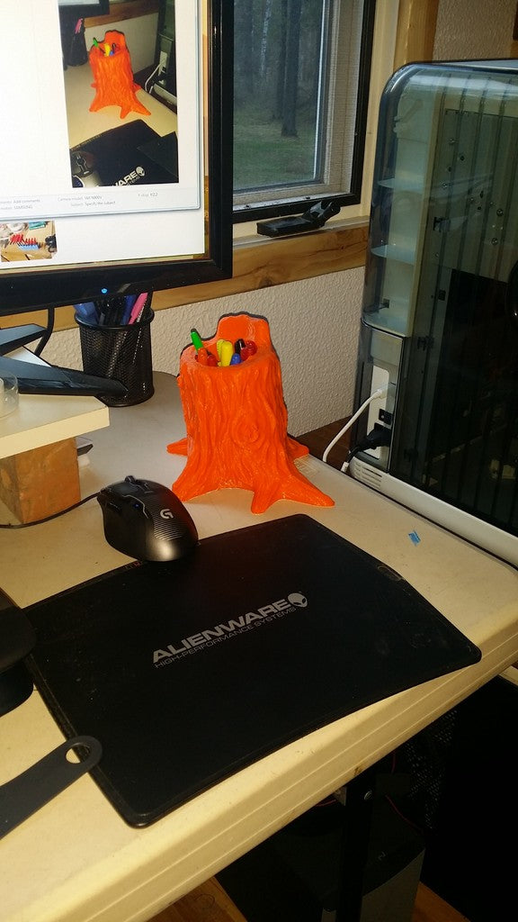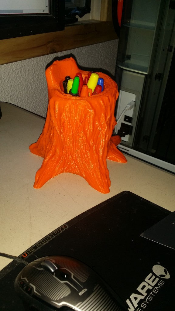 Tämä on ainutlaatuinen ja taiteellinen kynän- ja kynänpidike, joka on puun kannon muotoinen. Se on suunniteltu niin suureksi, että siihen mahtuu useita kyniä ja kyniä kerralla, ja sen luonnosta inspiroitunut muotoilu tuo ripauksen luonnonkauneutta mihin tahansa työpöytään tai luovaan tilaan. Se on ihanteellinen pitämään työpöytäsi järjestyksessä ja samalla tuomaan huoneeseen persoonallisen lisän.